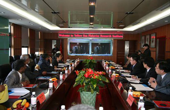 王清印所長首先對也門政府漁業代表團的到訪表示熱烈歡迎,并希望通過也門政府漁業代表團的到訪,加深中國和也門漁業界的了解,并建立起良好的合作關系。金顯仕副所長向來賓介紹了黃海所的學科設置、重點研究領域、重點研究方向、人才培養,以及國際間的合作與交流等方面情況;隨后,雙方就各自關心的問題進行了廣泛交談,探討了合作交流的可能性。