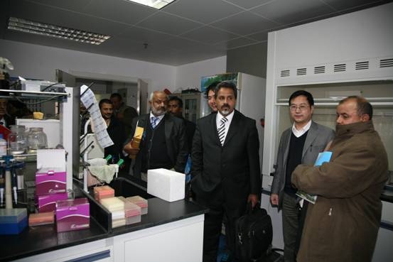 交談結束后,也門政府漁業代表團在金顯仕副所長的陪同下參觀了黃海所海洋產物資源與酶工程實驗室、種質資源與工程育種實驗室和水產品安全與質量檢測研究室,聽取了各部門負責人的詳細介紹。
