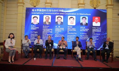 在海水養殖國際交流與合作對話環節,來自中國、泰國、印度尼西亞、亞太水產養殖中心網的專家、學者和企業家就水產養殖合作領域與模式分享、中國及國際市場需求變化分析、科技創新、金融服務與產業發展進行了分享、互動與交流。