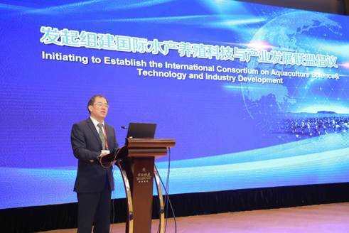 中國水產科學研究院副院長劉英杰介紹發起組建《國際水產養殖科技與產業發展聯盟》倡議