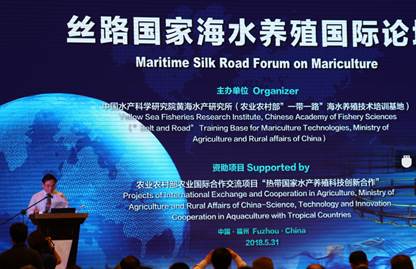5月31日,“絲路國(guó)家海水養(yǎng)殖國(guó)際論壇”在福州召開。論壇由黃海水產(chǎn)研究所與中國(guó)水產(chǎn)流通與加工協(xié)會(huì)、全國(guó)水產(chǎn)技術(shù)推廣總站、中國(guó)水產(chǎn)學(xué)會(huì)、中國(guó)-東盟海水養(yǎng)殖技術(shù)聯(lián)合研發(fā)與推廣中心和國(guó)家蝦蟹產(chǎn)業(yè)技術(shù)體系等聯(lián)合主辦。論壇以“合作發(fā)展共享”為主題,聚焦“一帶一路”熱帶國(guó)家水產(chǎn)養(yǎng)殖,共享科技成果、共商技術(shù)合作。“2018全球水產(chǎn)養(yǎng)殖論壇”同期舉辦,來(lái)自國(guó)內(nèi)政府主管部門、科技教育機(jī)構(gòu)、行業(yè)協(xié)會(huì)、水產(chǎn)龍頭企業(yè)的代表,以及美國(guó)、挪威、英國(guó)、厄瓜多爾、日本、泰國(guó)、新加坡、印度尼西亞、印度、馬來(lái)西亞、越南、柬埔寨、菲律賓等國(guó)家和地區(qū)的來(lái)賓近500人參加了論壇。