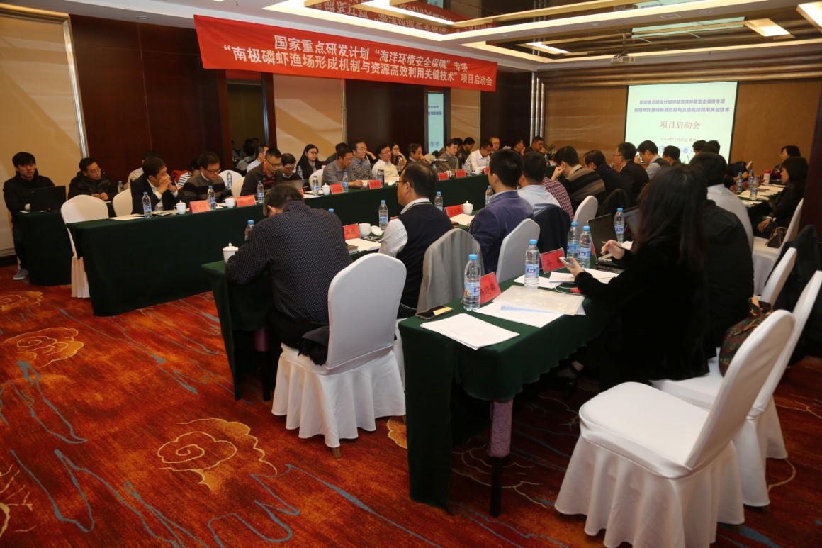 11月25日,由黃海水產研究所李顯森研究員為首席科學家的國家重點研發計劃項目“南極磷蝦漁場形成機制與資源高效利用關鍵技術”在青島順利啟動。中國水產科學研究院科研處處長方輝,大連海洋大學副校長宋林生,華東理工大學教授張元興,浙江海洋大學副校長徐漢祥,中國船舶重工集團公司第七〇一研究所主任祝海勇,煙臺大學教授邱盛堯等相關單位領導和專家以及上海海洋大學,大連工業大學,遼漁集團有限公司,中國水產科學研究院東海水產研究所、漁業機械儀器研究所等項目參與單位主管領導及項目參與人員代表等60余人出席了會議。會議由黃海水產研究所黨委書記趙憲勇主持。