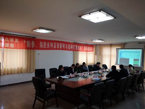 4月9日,黃海水產(chǎn)研究所邀請(qǐng)有關(guān)專(zhuān)家,對(duì)黃海水產(chǎn)研究所、青島瑞滋海珍品發(fā)展有限公司共同承擔(dān)的國(guó)家重點(diǎn)研發(fā)計(jì)劃課題“刺參、海膽良種高效制種與苗種擴(kuò)繁技術(shù)”中有關(guān)研究任務(wù)進(jìn)行階段性現(xiàn)場(chǎng)驗(yàn)收。驗(yàn)收專(zhuān)家組由山東省海洋生物研究院劉洪軍研究員,青島國(guó)家海洋科學(xué)研究中心王繼業(yè)研究員,青島農(nóng)業(yè)大學(xué)朱偉教授,青島市漁業(yè)技術(shù)推廣站站長(zhǎng)鄭炯和青島市西海岸新區(qū)漁業(yè)技術(shù)推廣站站長(zhǎng)李德軍組成。