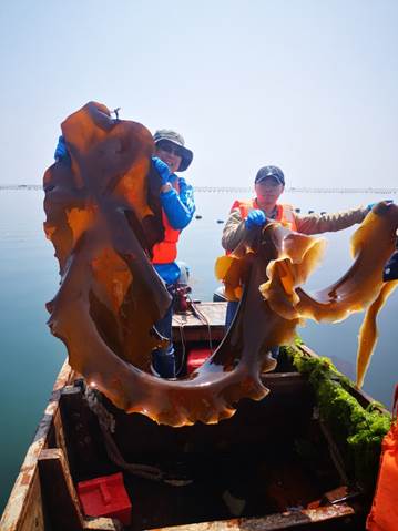 “玉帶1號(hào)”海帶是在現(xiàn)代農(nóng)業(yè)產(chǎn)業(yè)技術(shù)體系藻類體系離岸式養(yǎng)殖崗位專項(xiàng)(CARS-50)資助下培育的海帶新品系。“玉帶1號(hào)”海帶除了具有優(yōu)質(zhì)、高產(chǎn)的優(yōu)良性狀外,其突出特征是藻體柔韌性高,假根較發(fā)達(dá),抓握力強(qiáng),在離岸深水區(qū)養(yǎng)殖測試發(fā)現(xiàn),其脫苗率和破損率低,表現(xiàn)出較強(qiáng)的抗風(fēng)浪能力。該新品系對推動(dòng)我國海帶養(yǎng)殖產(chǎn)業(yè)向離岸深水區(qū)發(fā)展、拓展海藻養(yǎng)殖新空間奠定了良好的基礎(chǔ)。