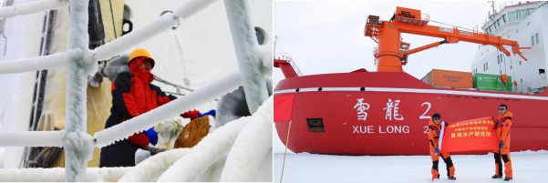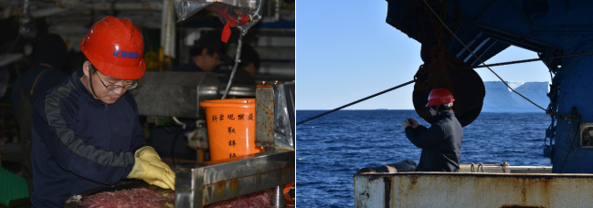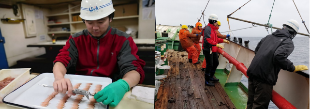 圖3.(左:磷蝦資源探捕調(diào)查;右:王新良、許慶昌參加中國第36次南極科學(xué)考察)