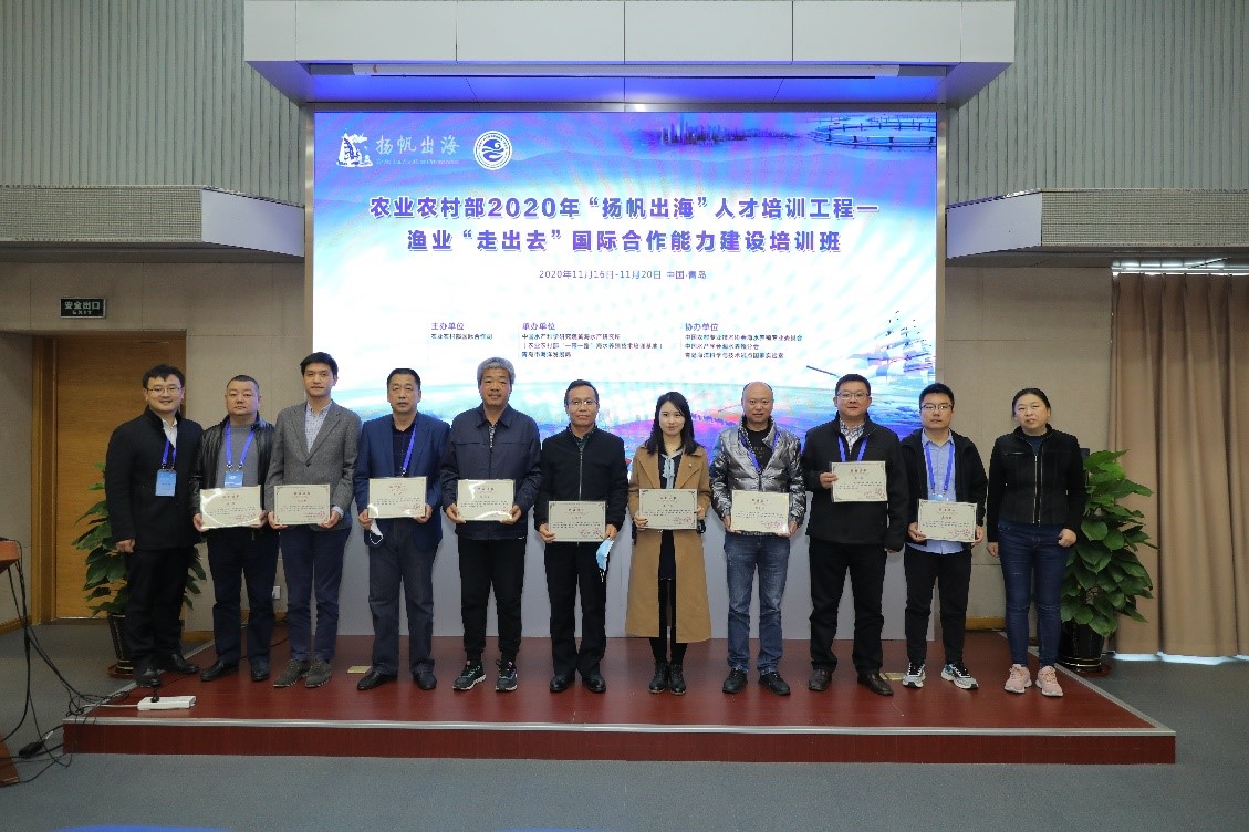 11月16日至20日,由農(nóng)業(yè)農(nóng)村部國(guó)際合作司主辦,中國(guó)水產(chǎn)科學(xué)研究院黃海水產(chǎn)研究所農(nóng)業(yè)農(nóng)村部“一帶一路”海水養(yǎng)殖技術(shù)培訓(xùn)基地和青島市海洋發(fā)展局承辦,中國(guó)農(nóng)村專業(yè)技術(shù)協(xié)會(huì)海水養(yǎng)殖專業(yè)委員會(huì)、中國(guó)水產(chǎn)學(xué)會(huì)海水養(yǎng)殖分會(huì)、青島海洋科學(xué)與技術(shù)試點(diǎn)國(guó)家實(shí)驗(yàn)室協(xié)辦的農(nóng)業(yè)農(nóng)村部2020年“揚(yáng)帆出海”人才培訓(xùn)工程——漁業(yè)“走出去”國(guó)際合作能力建設(shè)培訓(xùn)班在青島成功舉辦。來(lái)自天津、遼寧、河北、上海、江蘇、浙江、福建、山東、廣東、海南、廣西等11個(gè)省(區(qū)、市)的漁業(yè)行政主管部門和漁業(yè)“走出去”重點(diǎn)企業(yè)相關(guān)負(fù)責(zé)人57人在青島進(jìn)行了4天的培訓(xùn)學(xué)習(xí)。