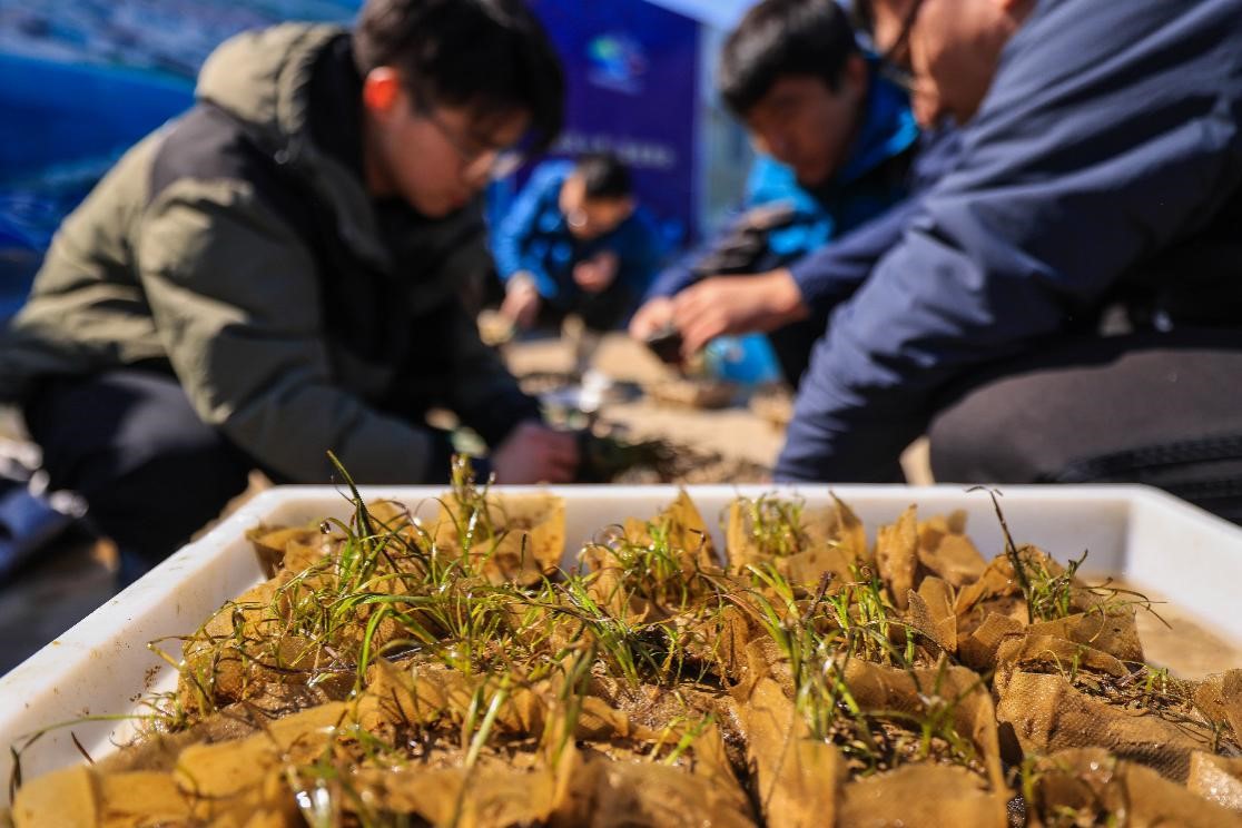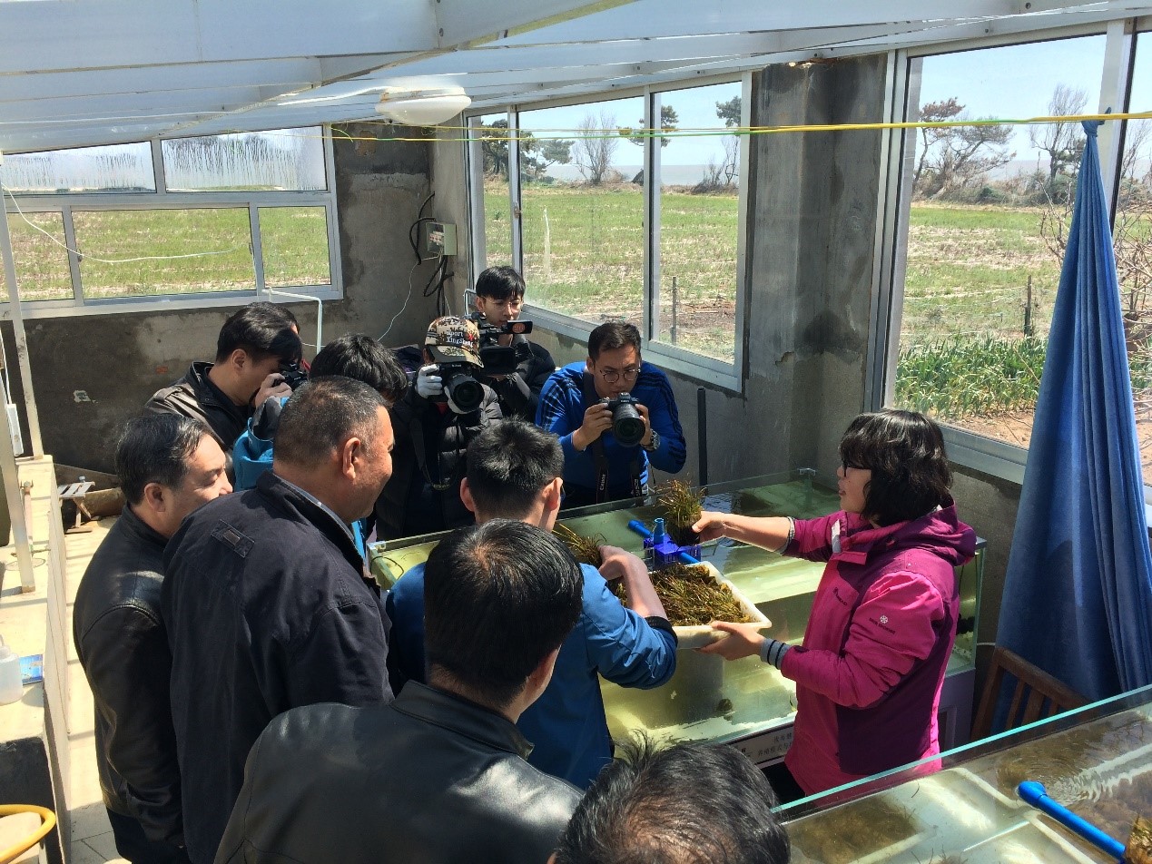 4月13日,中國水產科學研究院黃海水產研究所與榮成東楮島水產有限公司聯合開展的海草床生態系統重建項目通過專家組階段性現場驗收。驗收專家組由山東大學(威海)、山東省水生生物資源養護管理中心、威海市海洋發展局、威海市水產學校、榮成市漁業技術推廣站等單位的專家組成。