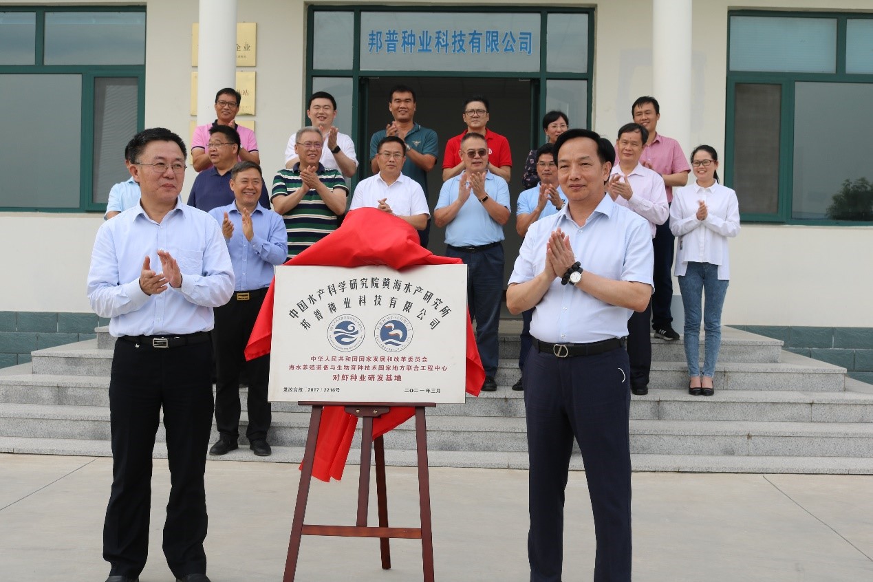6月7日,中國水產科學研究院黃海水產研究所與邦普種業科技有限公司合作共建的“對蝦種業研發基地”“對蝦育種聯合實驗室”揭牌儀式在濰坊昌邑市下營鎮舉行。昌邑市政府黨組副書記、昌邑經濟開發區黨工委書記、管委會主任李明杰,昌邑市海洋事業發展中心主任馬玉濤,恒興集團、恒興股份、邦普種業科技有限公司董事長陳丹,恒興股份執行副總裁王建紅,恒興股份副總裁歐陽艷、李色東等公司高管,黃海水產研究所所長金顯仕、副所長孔杰,所長助理、辦公室主任榮小軍以及所內相關部門負責人和專家團隊等50余人參加了揭牌儀式,儀式由成果轉化處處長王印庚主持。
