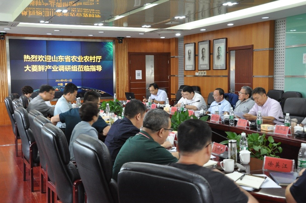 9月11日,山東省農業農村廳副廳長王敬東、總農藝師郭鵬、農產品質量監管處副處長馮作軍,農民日報山東站站長呂兵兵,山東省漁業發展和資源養護總站副站長李魯晶,中國水產流通與加工協會大菱鲆分會會長雷東等一行到中國水產科學研究院黃海水產研究所調研大菱鲆產業發展情況。黃海水產研究所副所長李健、孔杰,辦公室、科研處、成果轉化處等部門負責人,國家水產品質檢中心及國家海水魚產業技術體系等相關領導、專家參加了調研座談會。