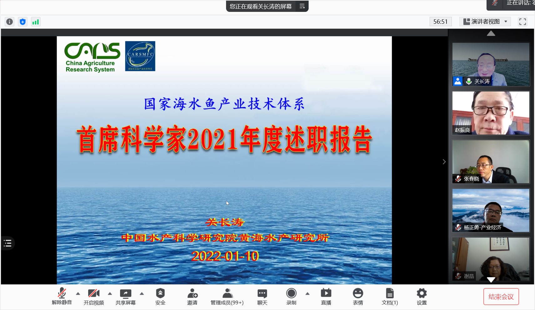 農(nóng)業(yè)農(nóng)村部漁業(yè)漁政管理局主持體系首席科學(xué)家考評(píng)