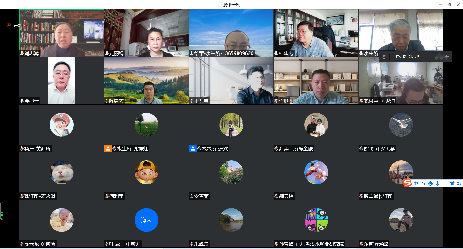 4月23日,中國水產科學研究院黃海水產研究所牽頭承擔的國家重點研發計劃“藍色糧倉科技創新”重點專項“我國重要漁業水域食物網結構特征與生物資源補充機制”項目2021年度工作總結會議采取線上方式召開。項目責任專家中國水產科學研究院副院長劉英杰研究員,項目專家組中國科學院水生生物研究所曹文宣院士、桂建芳院士、中國科學院南海海洋研究所副所長龍麗娟研究員、自然資源部第二海洋研究所副所長陳建芳研究員、魯東大學于君寶教授,跟蹤管理專家山東東營海洋發展研究院任鵬高級工程師,中國農村技術開發中心專員遲海,項目及各課題負責人、課題骨干等80余人參加了會議。會議由黃海水產研究所科研處處長劉志鴻研究員主持。
