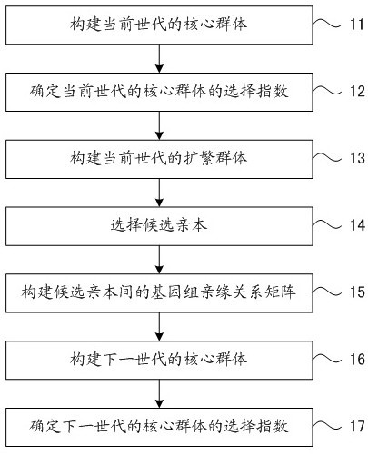 應用本發明,能夠提高核心群體的選擇強度,增加育種目標性狀的選擇準確性,進一步提升遺傳增益,可在對蝦、羅氏沼蝦等以規模化家系為基礎的商業化育種體系中推廣應用。