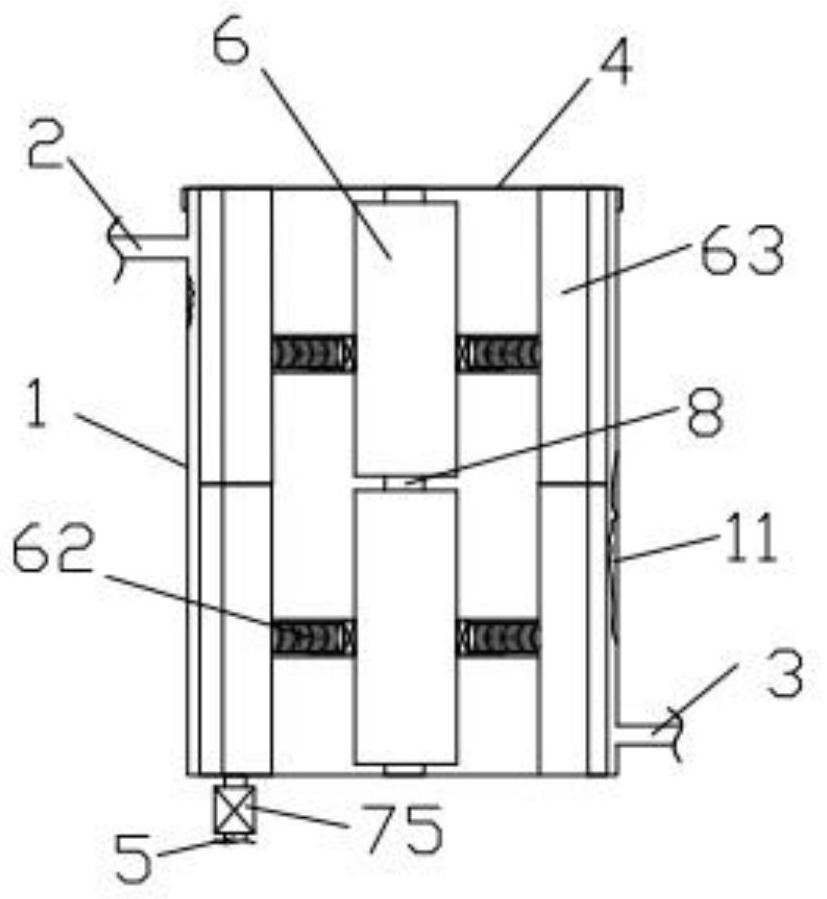 本發明屬于船舶熱水供應領域,更具體的涉及一種船舶用漸進式水垢自清潔熱水箱,包括箱體和設置在箱體上的進水口和出水口,還包括設置于所述箱體內的用于刮除箱體內部表面的水垢刮除器,用于為水垢刮除器提供動力的驅動裝置。所述水垢刮除器包括與驅動裝置連接用于提供動力的轉動桿,所述轉動桿的一端連接有可以伸縮的伸縮機構,所述伸縮機構的另一端連接有用于刮除水垢的刮板;還包括一設置于刮板上用于感受水垢阻力的阻力感應器,一用于感應刮板前端與箱體內壁距離的距離感應器,以及用于控制水垢刮除器和驅動機構的控制器。本發明能夠在快速刮除水垢的同時,保證箱體內壁不受損傷,并能對電機進行保護。