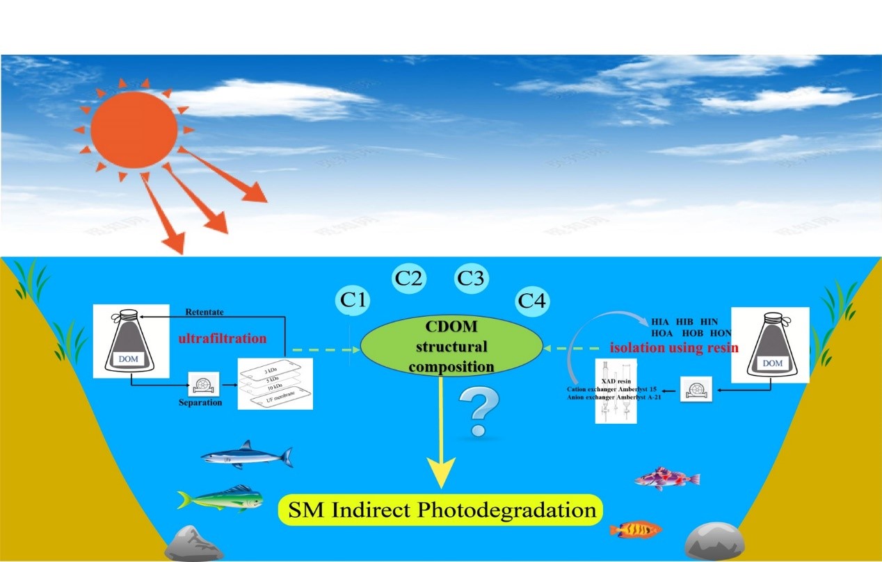 中國(guó)水產(chǎn)科學(xué)研究院黃海水產(chǎn)研究所漁業(yè)環(huán)境優(yōu)化與循環(huán)水處理技術(shù)創(chuàng)新團(tuán)隊(duì)針對(duì)這一科學(xué)問(wèn)題展開(kāi)深入研究,揭示了溶解有機(jī)物結(jié)構(gòu)組成在磺胺類(lèi)抗生素間接光降解過(guò)程中的關(guān)鍵作用,闡明了海水中關(guān)鍵環(huán)境因子對(duì)間接光降解的影響機(jī)理,相關(guān)研究成果發(fā)表在環(huán)境科學(xué)與生態(tài)學(xué)領(lǐng)域TOP期刊Science of The Total Environment和Environmental Pollution上。