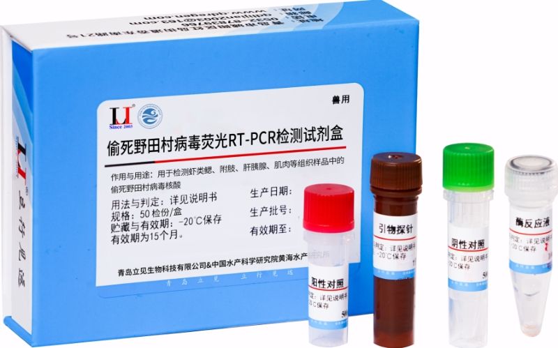 黃海所養殖生物疾病控制與分子病理學研究室(以下簡稱“研究室”)是國內較早開展對蝦病毒病研究的科研團隊。2014年,研究室張慶利研究員首次分離鑒定了甲殼動物新發病原——偷死野田村病毒(CMNV),并相繼開展了CMNV病原學、病原生態學以及跨物種感染風險研究,研發了其PCR、熒光定量PCR、組織病理分析等檢測技術,并制定了檢測行業標準,2021年以來協助農業農村部漁業漁政管理局和全國水產技術推廣總站連續開展了CMNV檢測實驗室能力驗證工作,技術支撐該病原感染于2023年被世界動物衛生組織(WOAH)收錄為水產養殖動物新發病。近年來,張慶利研究員帶領團隊與青島立見生物科技有限公司持續開展合作,成功研制出該檢測試劑盒。產品包含RT-PCR酶反應液、引物探針、陽性對照和陰性對照等組分,可通過實時熒光值判定檢測結果,實現對蝦類樣品中偷死野田村病毒核酸的高靈敏度檢測。