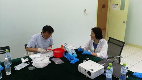 黃海水產(chǎn)研究所專家在基地收集魚類病原檢測樣本