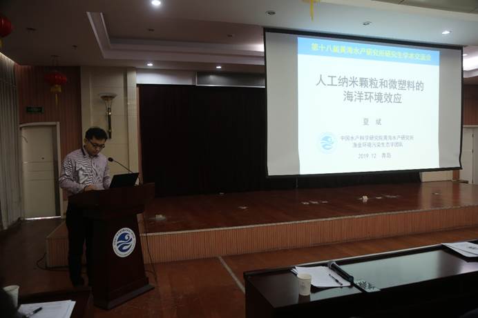 漁業環境與生物修復研究室夏斌博士做“人工納米顆粒和微塑料的海洋環境效應”主題報告