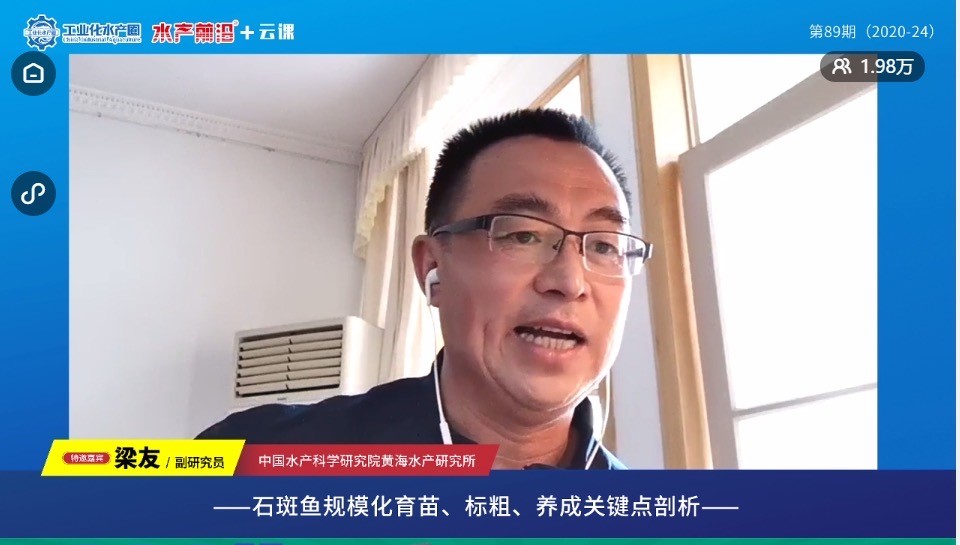 年初的新冠肺炎疫情令原本就處于低迷期的石斑魚養殖業雪上加霜。面對養殖石斑魚病害高發、種質退化和銷售價格下滑等諸多挑戰,從業人員迫切需要產業技術專家給予指導。4月3日,黃海水產研究所“漁業抗疫復產服務團”專家梁友副研究員應邀做客水產前沿第89期(2020-24)農牧學堂微信直播間,做了題目為“石斑魚規模化育苗、標粗、養成關鍵點剖析”的講座報告。講座從石斑魚規模化繁育技術及集約化養殖工藝、生物餌料選擇、養成關鍵點控制和土塘、工廠化、高位池、網箱養殖模式對比等方面進行了深入淺出的講解,并就養殖企業和養殖戶關心的石斑魚體表斑點變化、腸道微孢子蟲病和虹彩病毒防治等熱點問題與觀看直播的2萬余名網友進行互動答疑。兩個多小時的講解與互動,增強了石斑魚從業者復產復工的信心與決心,對助力石斑魚養殖產業綠色發展起到了積極作用。