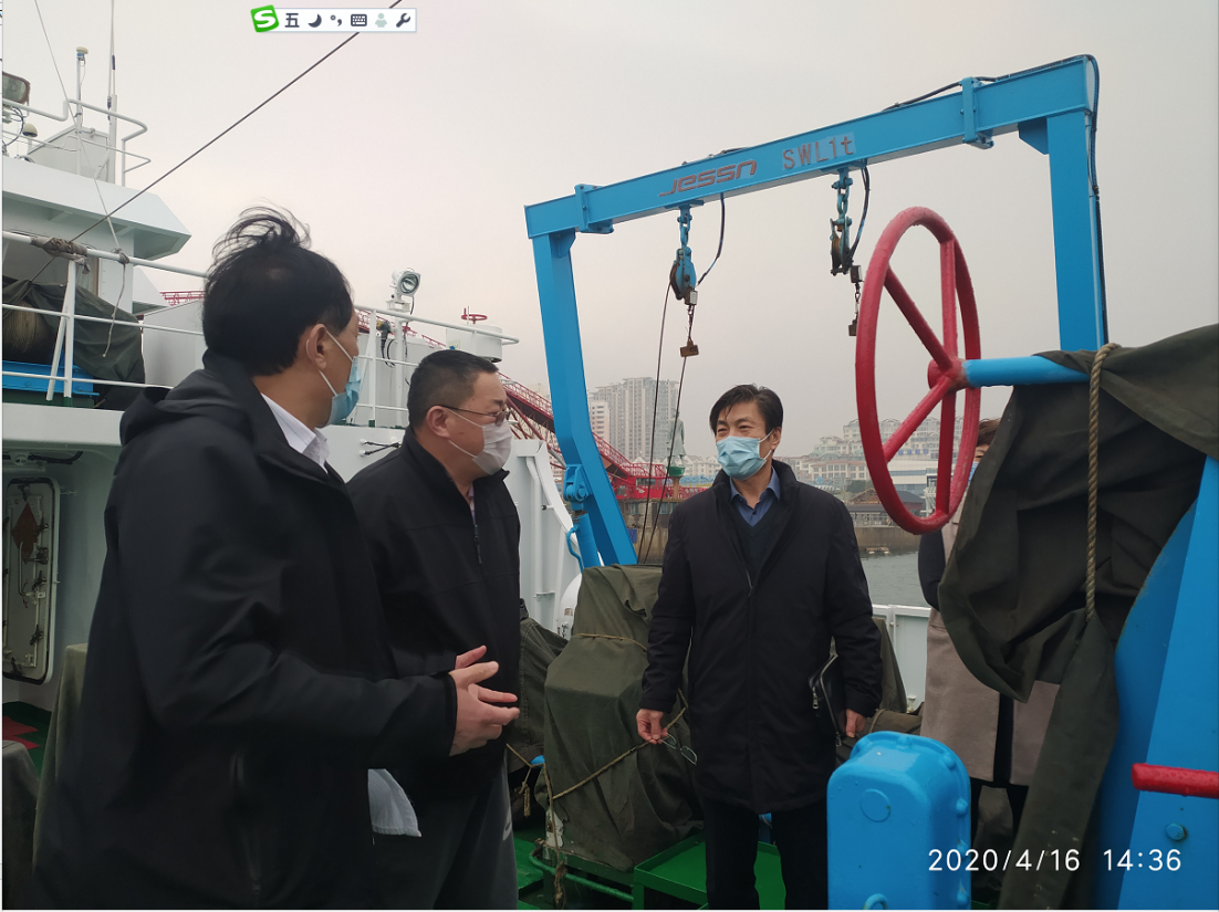 4月16日下午,中國水產科學研究院黃海水產研究所黨委書記趙憲勇和船舶管理處相關人員前往銀海碼頭,看望慰問“中漁科101”號和“中漁科102”號調查船上在疫情期間堅守崗位的船員,并與兩船人員進行了交流。