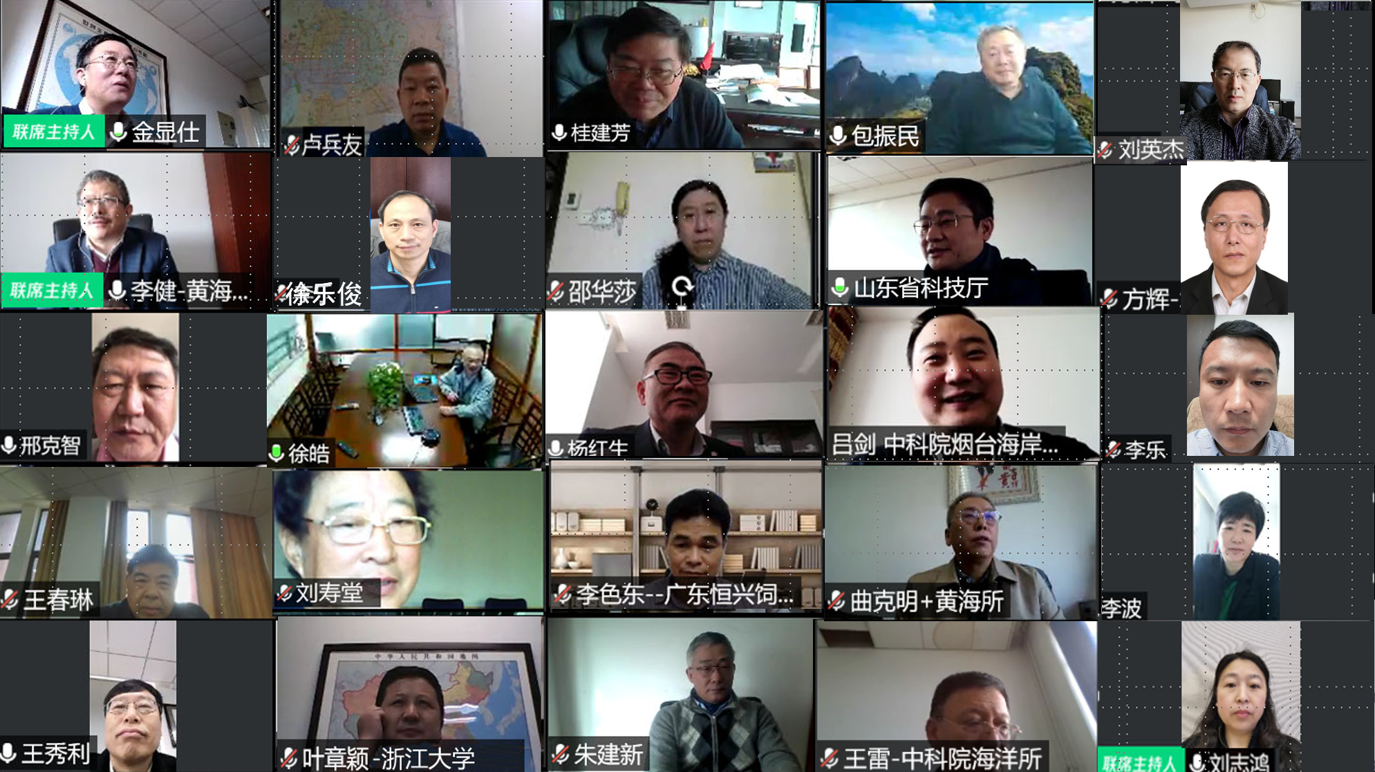 4月17日,由中國水產科學研究院黃海水產研究所牽頭承擔的國家重點研發計劃“藍色糧倉科技創新”重點專項“海水池塘和鹽堿水域生態工程化養殖技術與模式”“工廠化智能凈水裝備與高效養殖模式”兩個項目啟動會以視頻會議形式召開。啟動會開幕式上,黃海水產研究所所長金顯仕代表項目牽頭單位致辭,他對各位領導和專家指導表示感謝,并強調將進一步落實“放管服”精神,強化法人責任,優化管理制度,全力為項目的順利實施提供服務保障。桂建芳院士、包振民院士、劉英杰研究員、楊紅生研究員、徐皓研究員、呂劍研究員、王春琳研究員、邢克智教授、李色東教授級高工、劉壽堂高工、李波研究員等專項總體專家、項目學術咨詢專家和產業界專家應邀出席視頻會議并就項目實施方案進行指導。科技部中國農村技術開發中心專項管理團隊、項目推薦單位農業農村部科技教育司、農業農村部漁業漁政管理局、山東省科技廳、中國水產科學研究院和項目承擔單位相關領導、項目組成員等120余人參加了本次視頻會議。