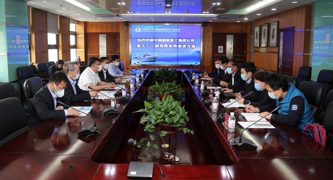 5月13日,中國船舶重工集團公司第七一一研究所黨委書記、副所長沈余生一行5人到中國水產科學研究院黃海水產研究所訪問交流。黃海水產研究所副所長辛福言、相關部門負責人及“藍海101”號船長、輪機長接待了沈余生書記一行,并進行了座談交流。