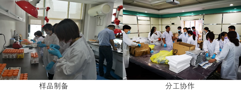 本次能力驗證工作涉及空白基質篩查、藥物在基質中的穩定性驗證、模擬運輸環境進行樣品傳遞以及開展保溫材料性能測試等多個環節。為了確保該項工作的順利完成,在質檢中心領導的部署下,主要參與人員自2020年3月初多次組織線上/線下的工作研討,制定翔實、周密的工作方案,并根據研討意見反復修改、完善,力保考核工作無一疏漏。另外,中心制定了現場制樣方案及樣品寄送方案,采用分區、分時、分事、分組的原則開展相關工作,充分考慮到各個環節存在的潛在風險。三個多月的前期充分準備為本次能力驗證工作的順利完成提供了全方位保障。