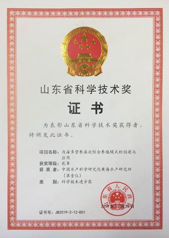 7月2日,2019年度山東省科技創(chuàng)新大會在濟(jì)南召開,表彰為山東省科技創(chuàng)新事業(yè)和經(jīng)濟(jì)社會發(fā)展做出突出貢獻(xiàn)的科技工作者。中國水產(chǎn)科學(xué)研究院黃海水產(chǎn)研究所蔣增杰研究員團(tuán)隊領(lǐng)銜完成的“淺海多營養(yǎng)層次綜合養(yǎng)殖模式的創(chuàng)建與應(yīng)用”成果榮獲山東省科技進(jìn)步二等獎。