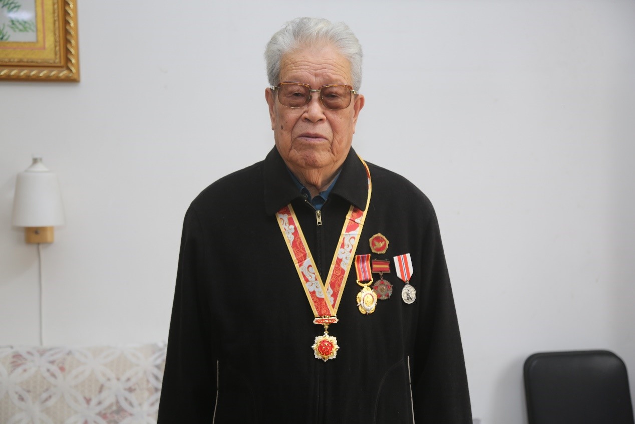 今年92歲高齡的鐘令道抗美援朝期間任志愿軍27軍79師235團報務員,現為黃海水產研究所離休干部。從軍期間,榮立三等功三次,四等功二次,1954年1月因演習成績優異被授物資獎一次;先后獲得1951年“抗美援朝”紀念章、1953年“和平萬歲”紀念章、2019年“慶祝中華人民共和國成立70周年”紀念章和2020年“中國人民志愿軍抗美援朝出國作戰70周年”紀念章等。