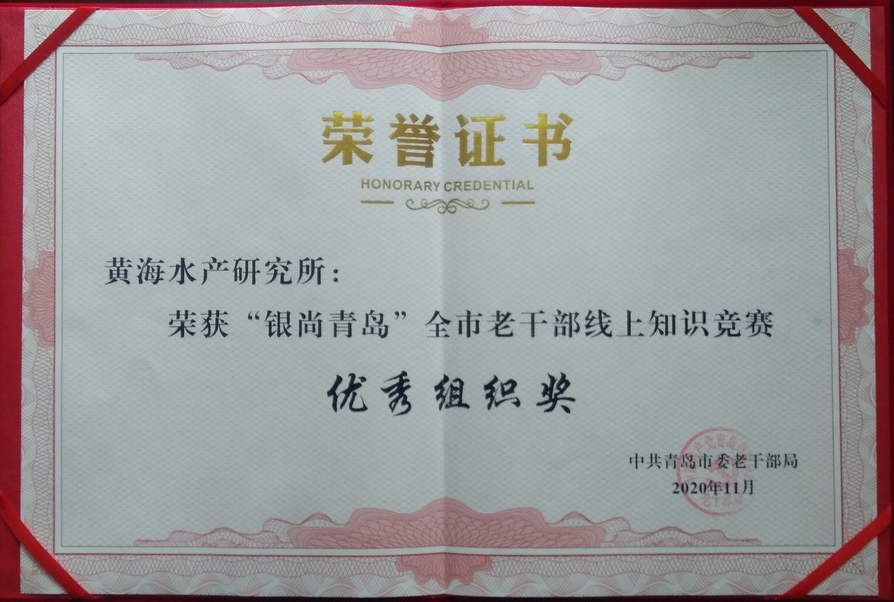 日前,在由中共青島市委老干部局主辦、青島市老干部活動中心承辦的“銀尚青島”全市老干部線上知識競賽中,中國水產科學研究院黃海水產研究所榮獲優秀組織獎。