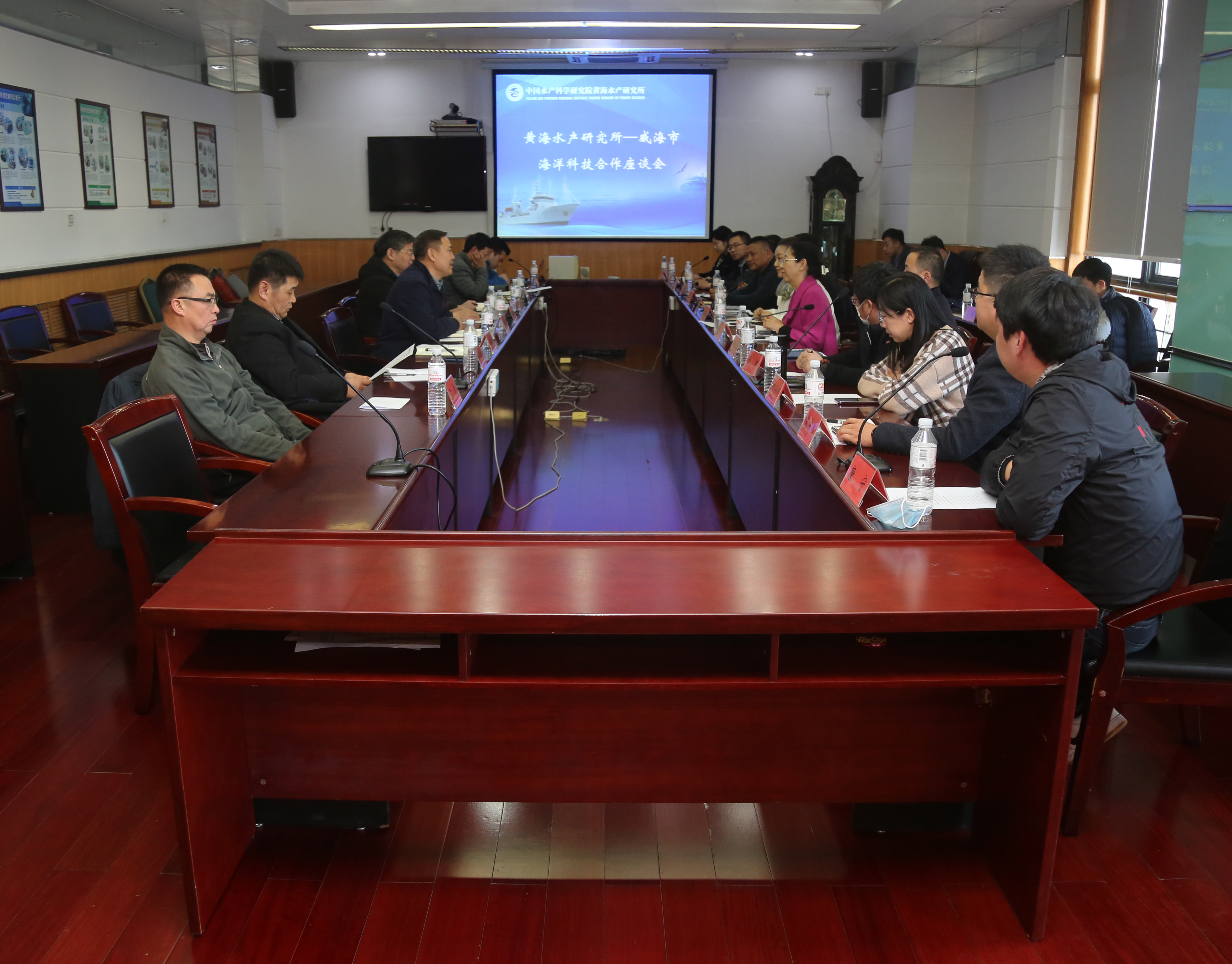 孔杰副所長(zhǎng)對(duì)楊芳副局長(zhǎng)一行到所交流訪(fǎng)問(wèn)表示歡迎,并通過(guò)播放宣傳片介紹了黃海水產(chǎn)研究所歷史沿革、研究領(lǐng)域、平臺(tái)建設(shè)、產(chǎn)業(yè)支撐與成果轉(zhuǎn)化等方面的基本情況,回顧了唐啟升院士、趙法箴院士、雷霽霖院士等一批批專(zhuān)家團(tuán)隊(duì)在威海的奮斗歷程和取得的豐碩成果。他指出,黃海水產(chǎn)研究所與威海市所地、所企合作歷史悠久、基礎(chǔ)深厚,而2019年黃海漁業(yè)科技創(chuàng)新研究院的成立標(biāo)志著雙方漁業(yè)科技合作進(jìn)入了一個(gè)嶄新的階段,黃海水產(chǎn)研究所將在此基礎(chǔ)上,努力為威海漁業(yè)產(chǎn)業(yè)發(fā)展提供全方位的科技支撐和技術(shù)服務(wù),與企業(yè)聯(lián)合攻關(guān)新品種培育、苗種繁育及養(yǎng)殖技術(shù)創(chuàng)新等難題,推動(dòng)漁業(yè)科技成果在威海開(kāi)花結(jié)果,為實(shí)現(xiàn)威海漁業(yè)綠色養(yǎng)殖、高質(zhì)量發(fā)展提供技術(shù)支撐。