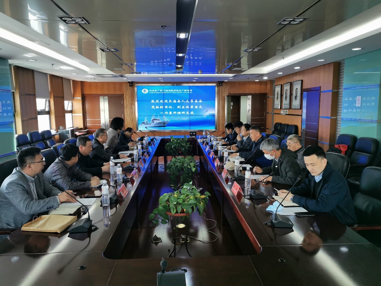 張慶文副處長對李寶文副書記一行來訪表示歡迎,并介紹了黃海水產(chǎn)研究所的歷史沿革、科技創(chuàng)新、成果轉(zhuǎn)化和所地合作等方面的概況,回顧了黃海水產(chǎn)研究所與長??h的合作歷史,希望雙方在共同推動長??h現(xiàn)代漁業(yè)產(chǎn)業(yè)綠色可持續(xù)發(fā)展的新征程上實現(xiàn)新的突破。李寶文副書記高度贊揚了黃海水產(chǎn)研究所在漁業(yè)科技領(lǐng)域取得的成就,希望借助黃海水產(chǎn)研究所的科研與人才優(yōu)勢,在水產(chǎn)種業(yè)、網(wǎng)箱養(yǎng)殖、貝類底播、深遠海開發(fā)利用、水產(chǎn)品加工等方面開展深層次的產(chǎn)學研合作,為長??h漁業(yè)發(fā)展注入綠色科技力量,帶動當?shù)睾Q鬂O業(yè)多業(yè)態(tài)創(chuàng)新發(fā)展。
