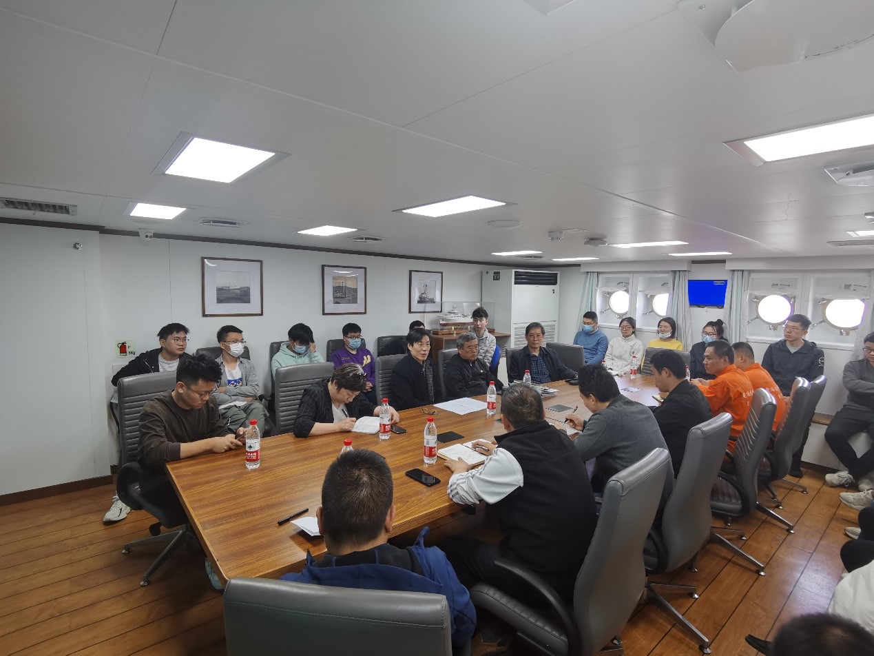趙憲勇書記聽取了各方匯報(bào)后,對(duì)搭載的科研人員表示歡迎,并提出三點(diǎn)希望:一是通過共享航次實(shí)施推動(dòng)海洋多學(xué)科的合作研究;二是初次登船參加科考的青年科研人員要主動(dòng)向有經(jīng)驗(yàn)的同事請教學(xué)習(xí),提升開展出??疾斓木C合能力;三是發(fā)揚(yáng)“團(tuán)隊(duì)協(xié)作、勇于擔(dān)當(dāng)、嚴(yán)謹(jǐn)求實(shí)、拼搏奉獻(xiàn)”的精神,精誠合作,圓滿完成航次的各項(xiàng)調(diào)查任務(wù)。