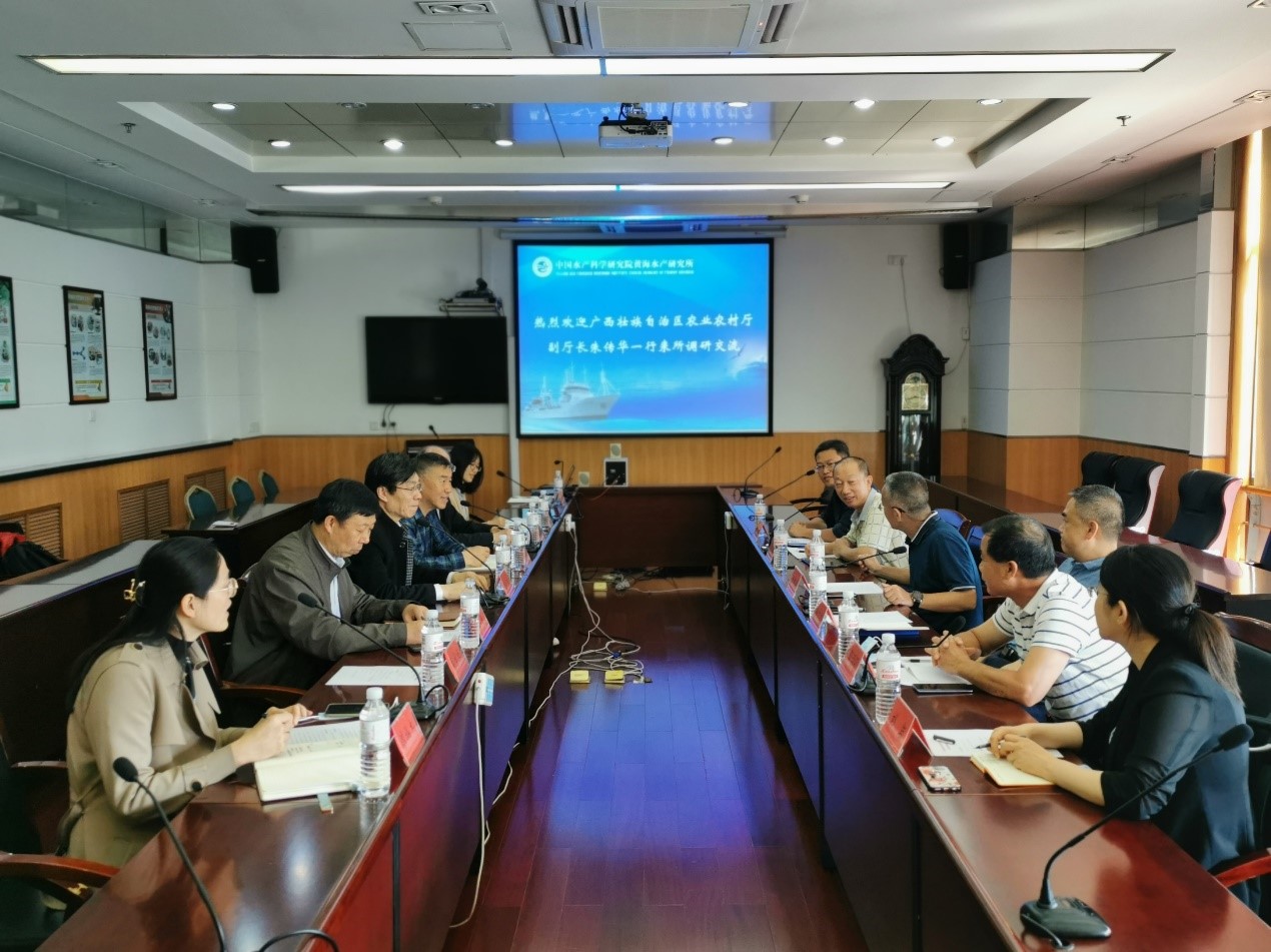 5月19日,廣西壯族自治區農業農村廳副廳長朱傳華一行5人到中國水產科學研究院黃海水產研究所,就海洋漁業種業發展和國家海洋漁業生物種質資源庫建設等工作進行調研交流。黃海水產研究所黨委書記、副所長趙憲勇,有關部門負責人及專家接待了朱傳華副廳長一行,并進行了座談。