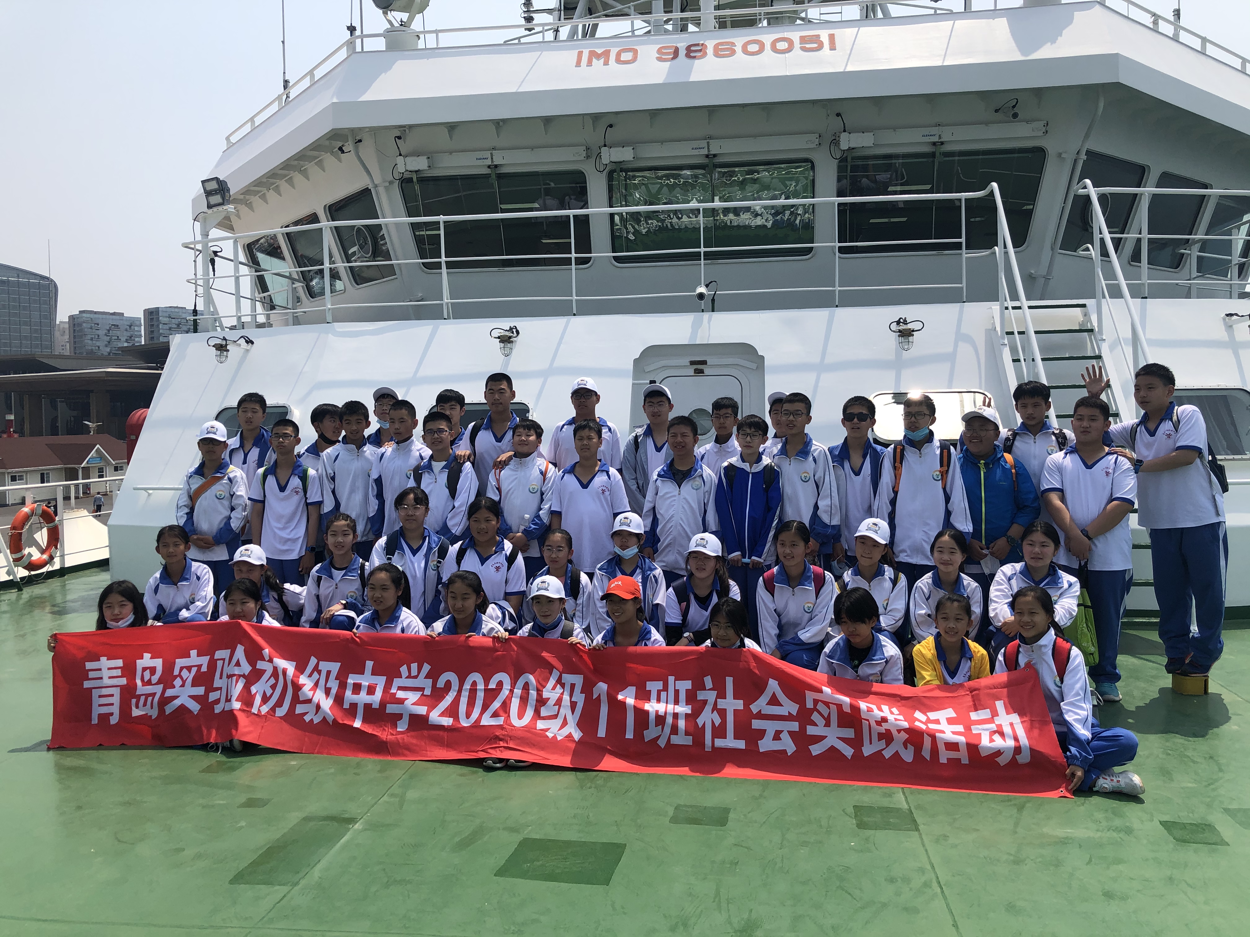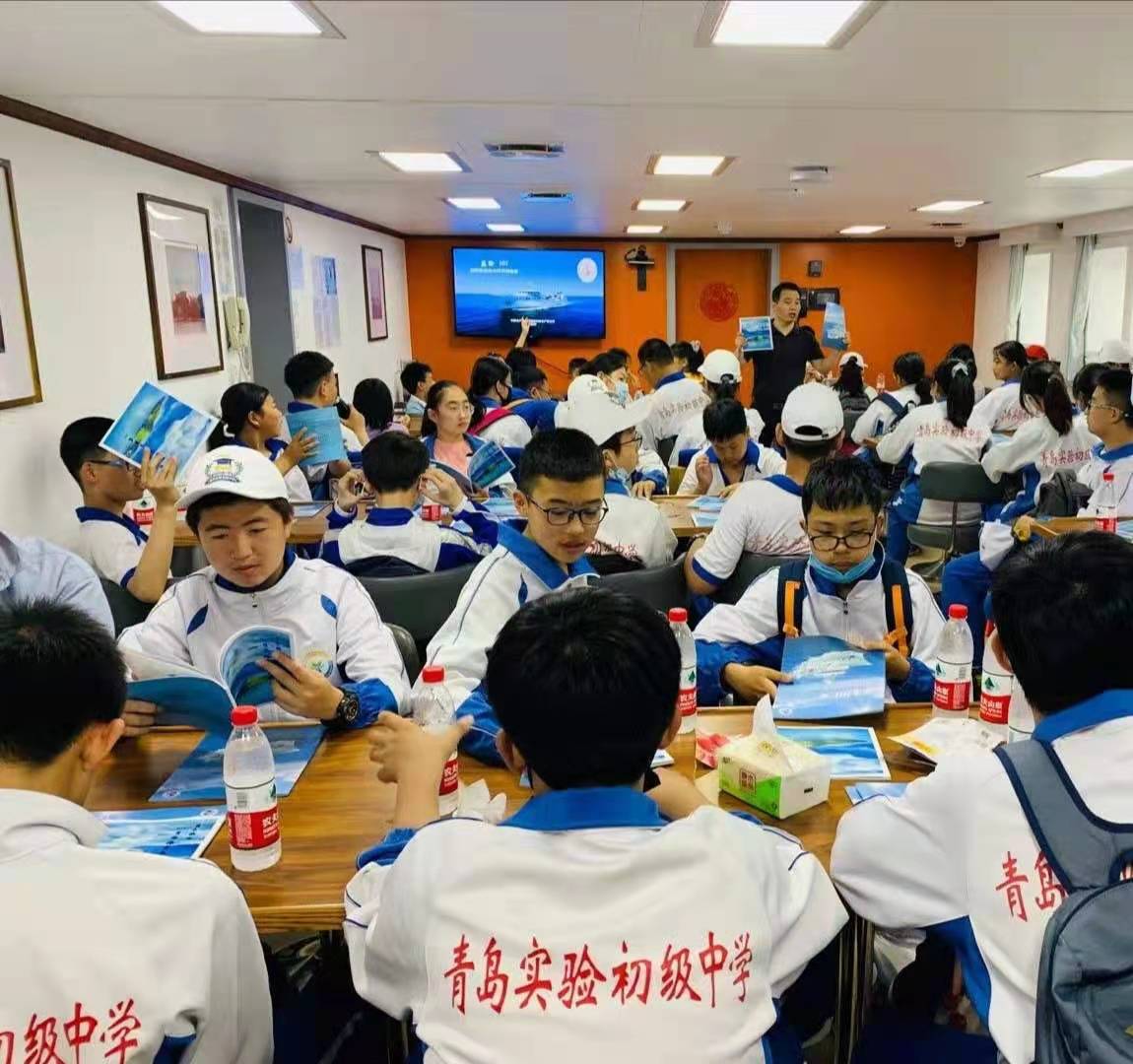 5月30日,中國水產科學研究院黃海水產研究所“藍海101”號海洋漁業綜合科學調查船(以下簡稱“‘藍海101’號調查船”)迎來了一群特別的訪客——山東青島實驗初級中學2020級11班全體同學及家長代表等60余人,參加“關心海洋、認識海洋、探索海洋”科普活動。黃海水產研究所船舶管理處負責人張志強、“藍海101”號調查船禹昊船長及工作人員予以熱情接待。