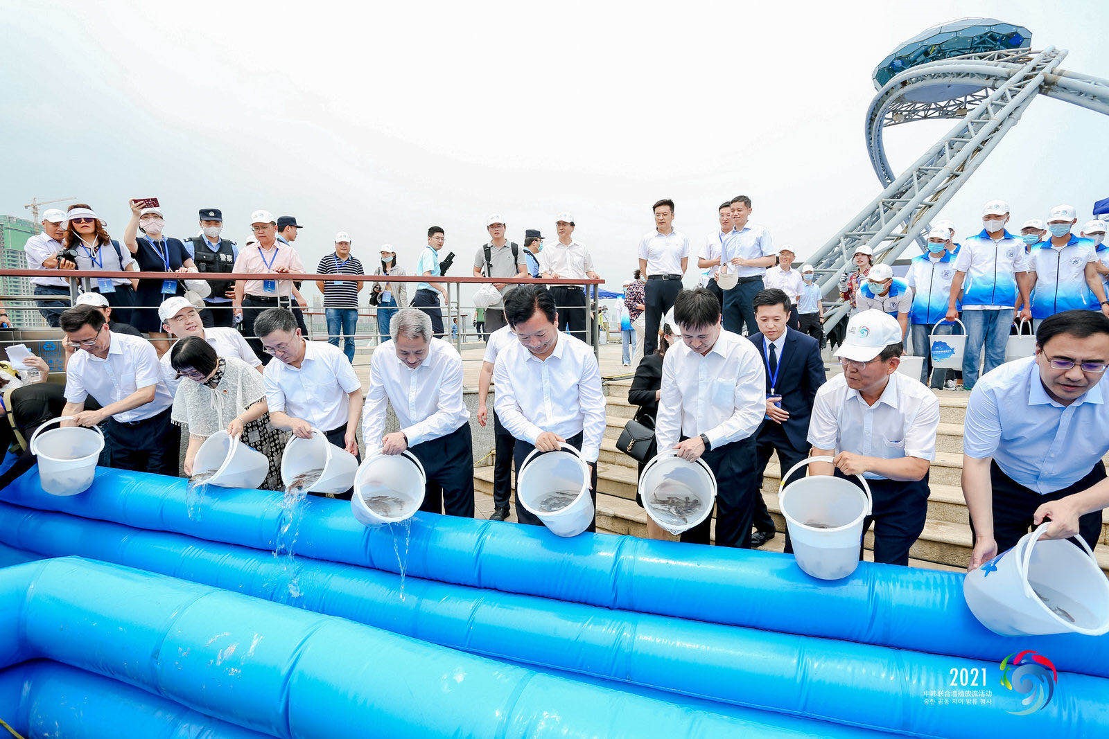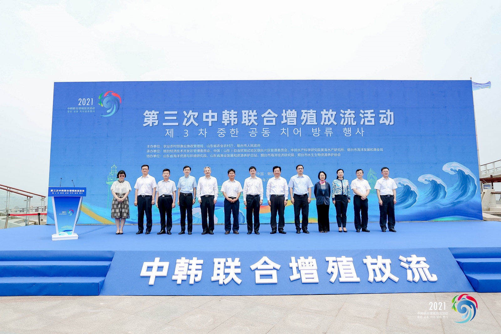 為保護黃海漁業資源和生態環境,根據中韓漁委會會談達成共識,7月9日第三次中韓聯合增殖放流活動通過線上線下相結合方式在中國煙臺和韓國仁川同步舉行。中方活動由農業農村部漁業漁政管理局、山東省農業農村廳、煙臺市人民政府共同主辦,煙臺經濟技術開發區管理委員會、中國(山東)自由貿易試驗區煙臺片區管理委員會、中國水產科學研究院黃海水產研究所、煙臺市海洋發展和漁業局等單位共同承辦。本次活動中韓雙方向黃海投放綠鰭馬面魨、黑鯛、小黃魚和梭子蟹等經濟物種共計100萬尾。