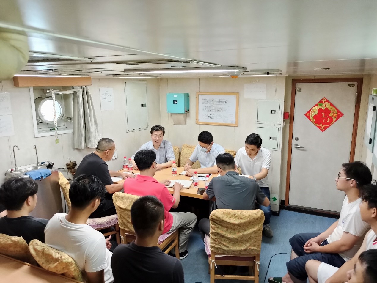 出航前,“中漁科102”號調查船船長管君匯報了船舶備航情況,航次首席科學家卞曉東介紹了航次調查內容和有關要求。趙憲勇書記在全面聽取各方匯報后提出四個方面要求:一是要提高安全意識,做好安全防范各項工作,確保人員、船舶和設備的安全,尤其要時刻關注天氣變化,做好臺風和極端天氣的預防;二是要繼續發揚黃海水產研究所漁業科考精神,同舟共濟,互相支持,緊密配合,高質量完成海上調查任務;三是疫情防控工作要落實船長負責制,做到常抓不懈,不能麻痹大意;四是要增強環保意識,嚴格按有關規定處理各類垃圾。