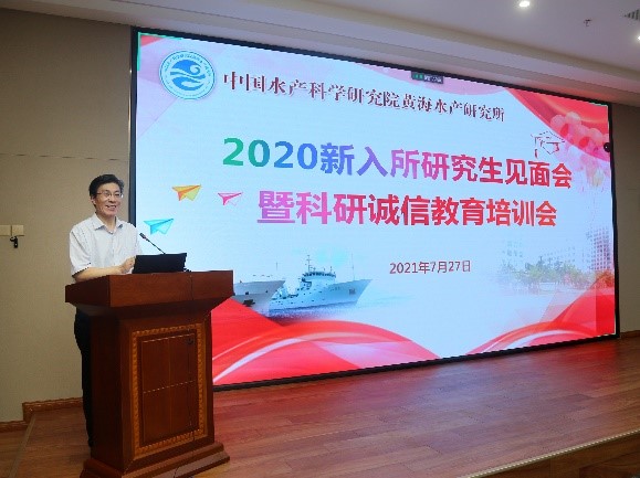 7月27日上午,中國水產(chǎn)科學研究院黃海水產(chǎn)研究所召開2020級聯(lián)合培養(yǎng)研究生入所教育培訓(xùn)會。所黨委書記、副所長趙憲勇,相關(guān)部門負責人、研究生導(dǎo)師代表以及新入所在青的2020級研究生等參加了本次活動。會議由人事處副處長、研究生辦公室主任周孟姣主持。
