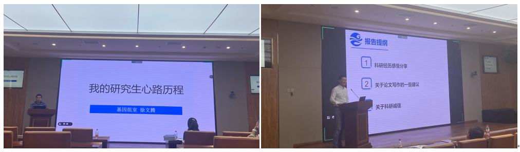 徐文騰副研究員、徐后國副研究員分別做了題為《我的研究生心路歷程》和《以夢為馬 不負韶華》的報告,從科研思維方法和職業(yè)發(fā)展規(guī)劃的角度,分享了他們的科研歷程與心得,交流了論文寫作方法與科研誠信,鼓勵大家以勇于擔當?shù)木窈涂茖W嚴謹?shù)膽B(tài)度投身科研學習中。隨后,相關(guān)職能部門負責人分別從所制度建設(shè)與所核心價值觀、研究生培養(yǎng)與管理制度、科研誠信與學術(shù)道德、研究生住宿管理規(guī)定、園區(qū)疫情防控與后勤保障等方面為同學們做了詳細講解。