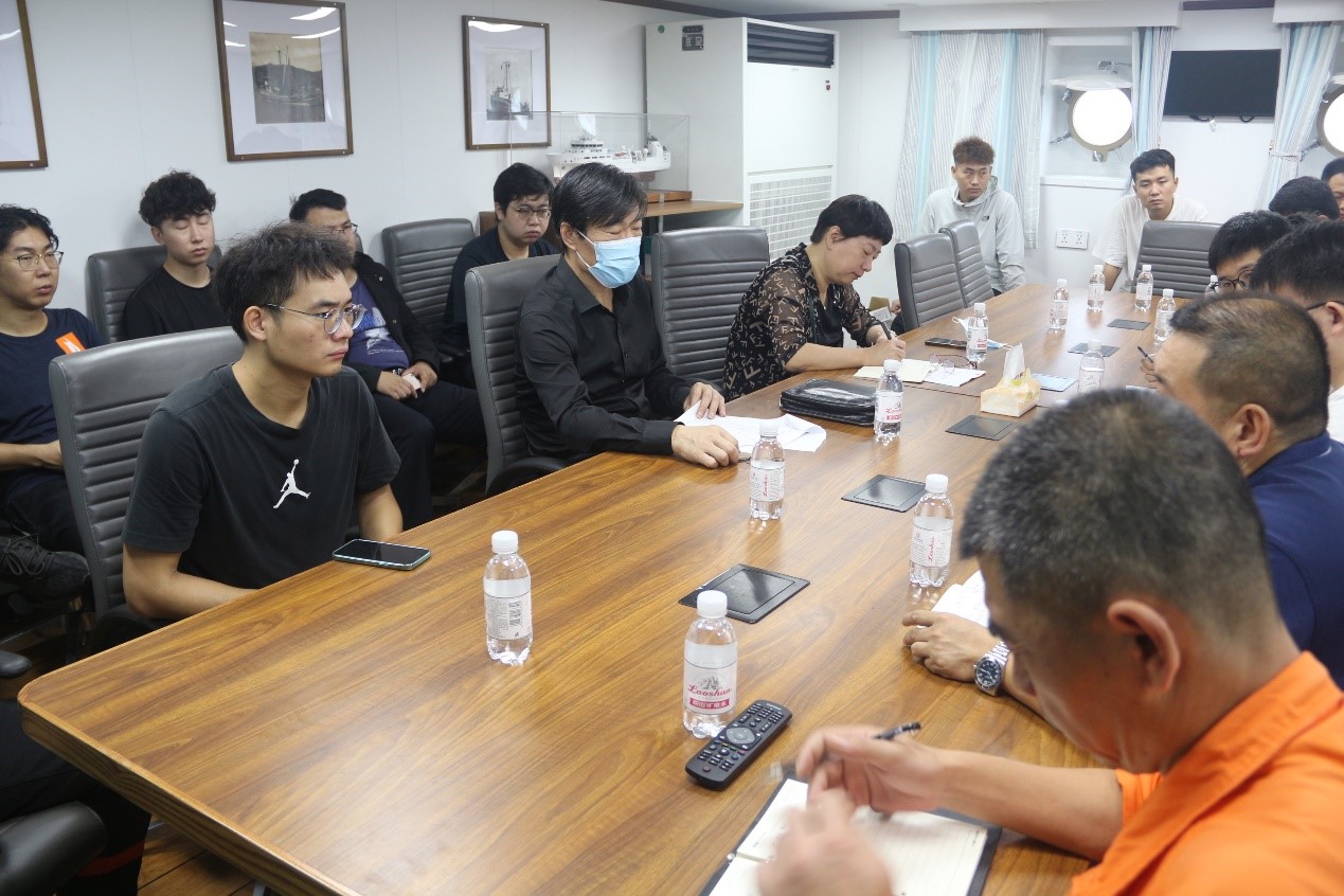 出航會上,“藍海101”號調查船船長禹昊、航次首席科學家滕廣亮分別匯報了航次備航情況和航次調查計劃等內容。調查船科考儀器負責人袁兵兵對儀器設備的規范使用以及數據的安全傳遞等內容進行了說明。船舶管理處副處長呂文清強調了海上安全注意事項,要求在保證人員、船舶安全的前提下高質量地完成航次科考任務。
