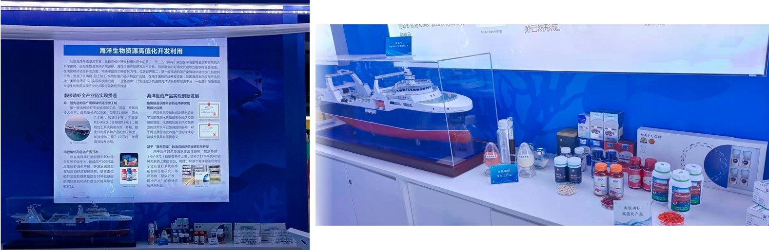 10月21日至27日,國家“十三五”科技創新成就展在北京展覽館成功舉辦。本次展覽以“創新驅動發展 邁向科技強國”為主題,集中展示“十三五”期間我國取得的重大科技創新成果和科技發展、改革最新進展。中國水產科學研究院黃海水產研究所主持承擔的國家重點研發計劃項目“南極磷蝦漁場形成機制與資源高效利用關鍵技術”相關成果入選此次展覽。現場參展內容包括南極磷蝦全產業鏈科研進展視頻與展板、“深藍”號專業南極磷蝦捕撈加工船模型和南極磷蝦高值化產品實物等。