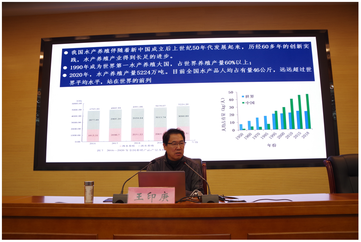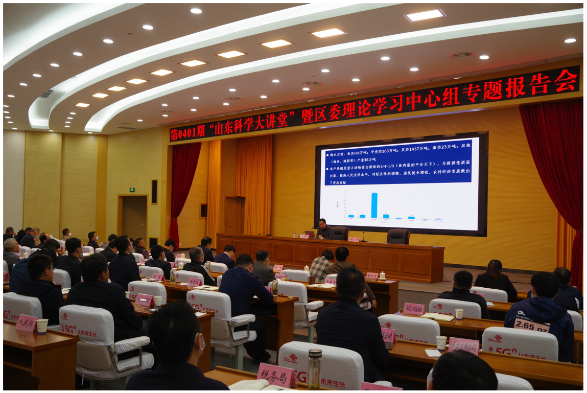 10月21日上午,中國水產(chǎn)科學(xué)研究院黃海水產(chǎn)研究所成果轉(zhuǎn)化處處長王印庚研究員受邀在“山東科學(xué)大講堂”作題為《水產(chǎn)養(yǎng)殖綠色高質(zhì)量發(fā)展途徑與實(shí)踐》的專題報(bào)告。本期“山東科學(xué)大講堂”由山東省科協(xié)、省教育廳、省科技廳、省衛(wèi)健委主辦,日照嵐山區(qū)區(qū)委宣傳部、區(qū)科協(xié)、區(qū)海洋發(fā)展局共同承辦,旨在普及科學(xué)知識(shí),弘揚(yáng)科學(xué)精神,促進(jìn)全民科學(xué)素質(zhì)提升。