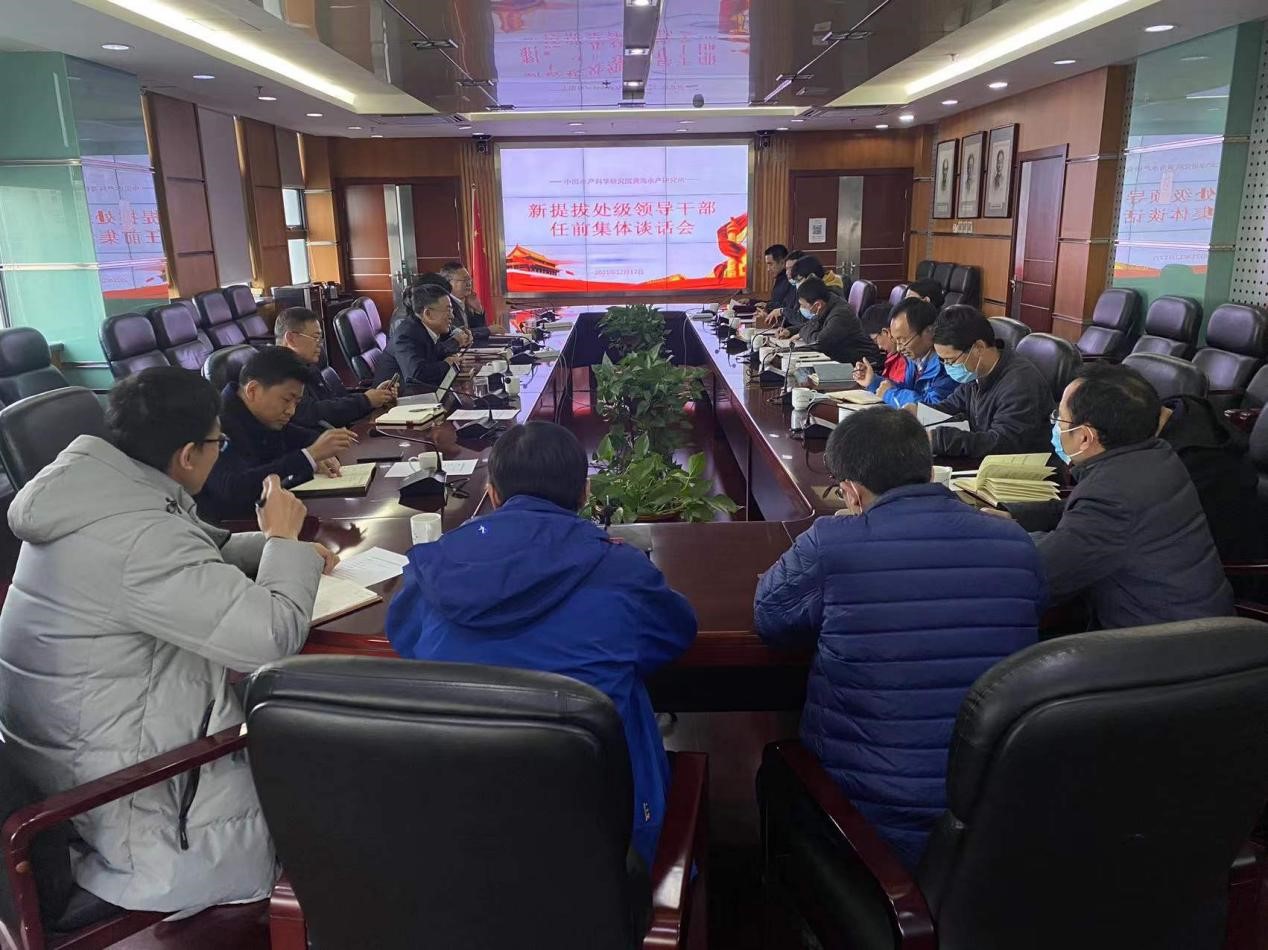 12月17日下午,中國水產科學研究院黃海水產研究所召開新任職處級干部任前集體談話會。黃海水產研究所所長金顯仕,黨委書記趙憲勇,副所長、紀委書記孔杰,副所長辛福言及相關部門負責人參加了會議。會議由趙憲勇書記主持。