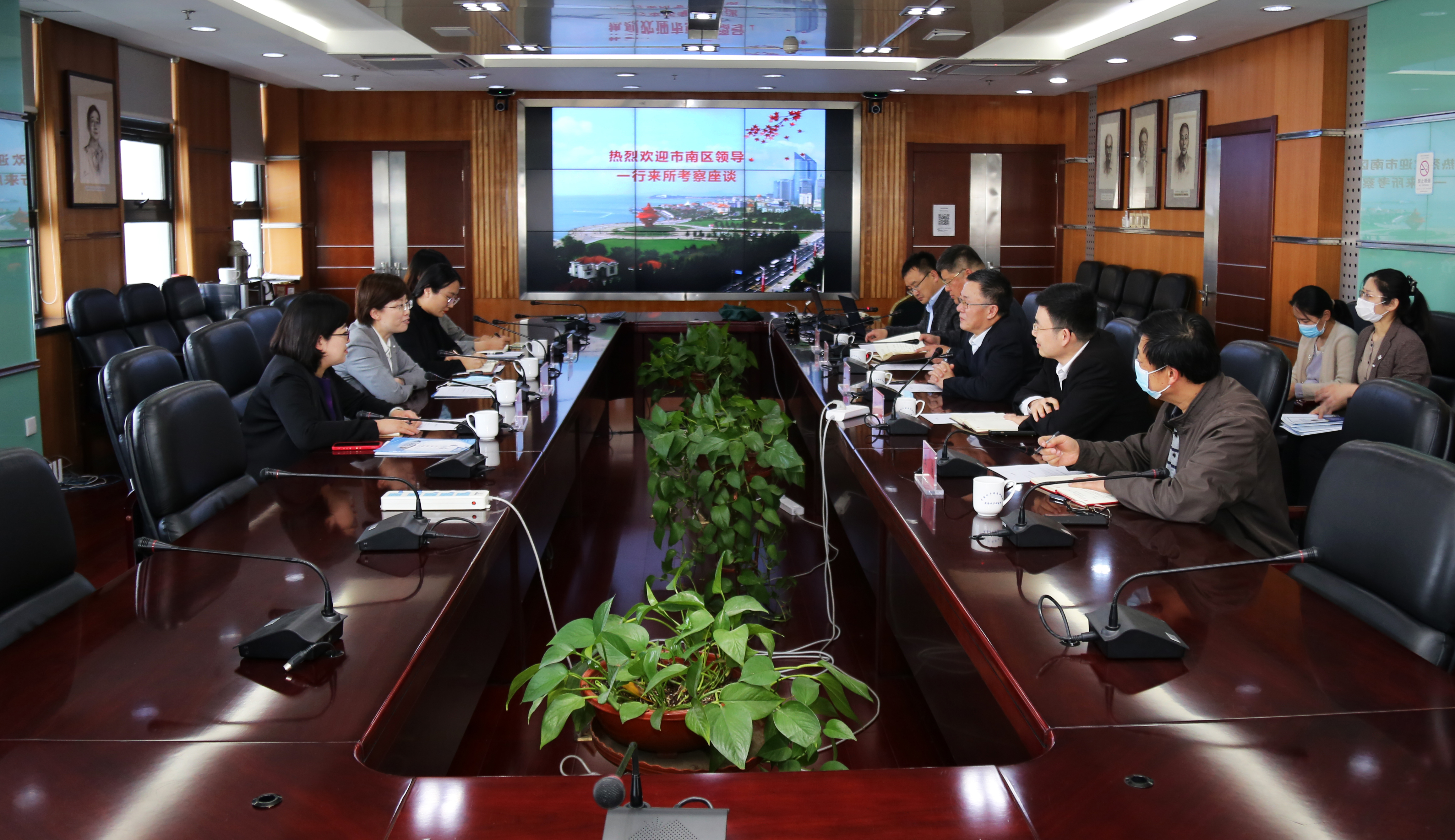 金顯仕所長對馮洪珍副區長一行來訪表示歡迎,對市南區政府長期以來的支持和幫助表示感謝,結合所宣傳片介紹了我所建所七十多年來在科技創新、技術支撐、成果轉化、人才隊伍建設等方面的概況,并重點就國家海洋漁業生物種質資源庫運行情況、所園區新冠肺炎疫情防控工作總體情況以及科研創新平臺建設等工作進行了詳細說明。金顯仕所長表示,黃海水產研究所將繼續堅持漁業科技創新引領,助力實現市南區打造新時代社會主義現代化國際大都市樣板區目標。