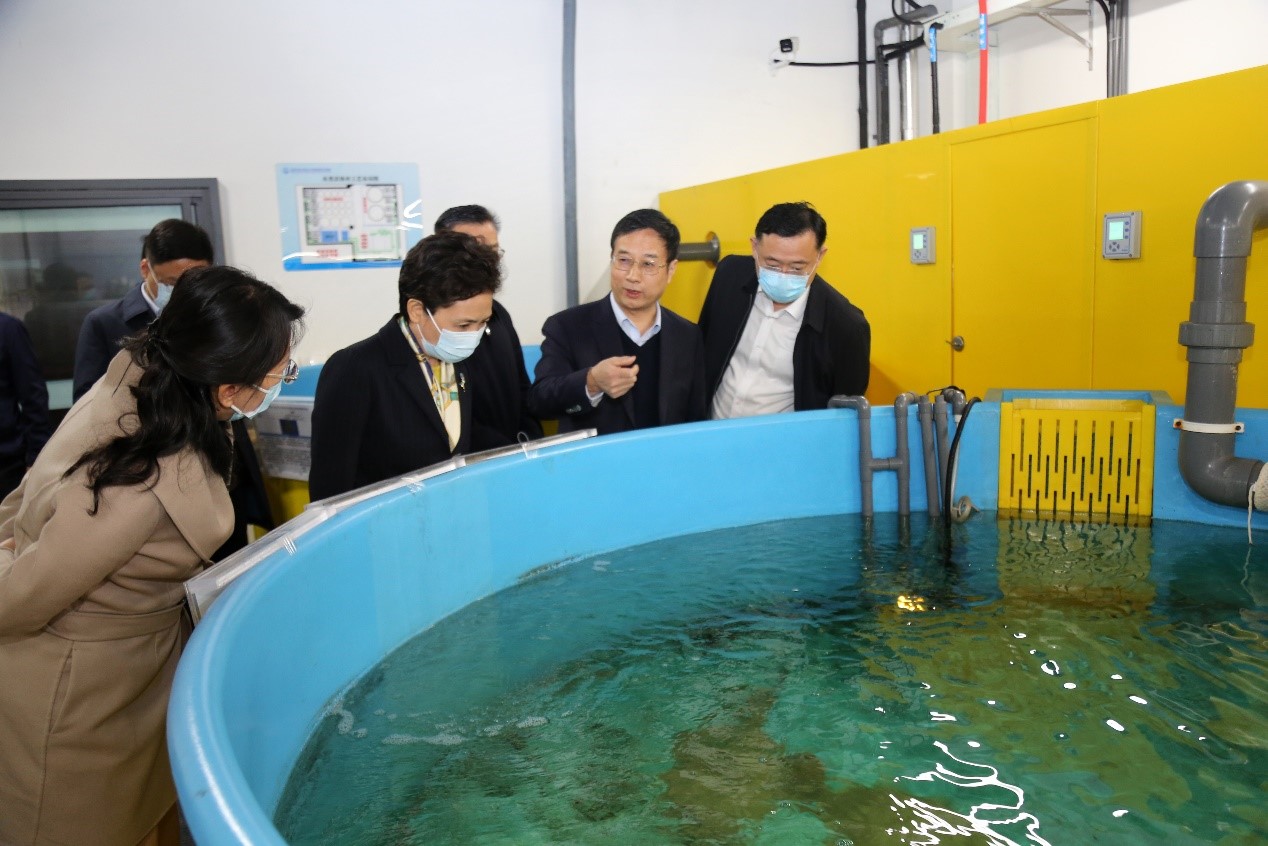 青島市委常委、組織部部長(zhǎng)于玉,副部長(zhǎng)吳學(xué)新等陪同調(diào)研。黃海水產(chǎn)研究所副所長(zhǎng)葉乃好、榮小軍和相關(guān)部門(mén)負(fù)責(zé)人參加了調(diào)研活動(dòng)。
