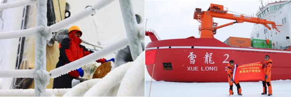 圖5.(左:磷蝦資源探捕調查;右:王新良、許慶昌參加中國第36次南極科學考察)