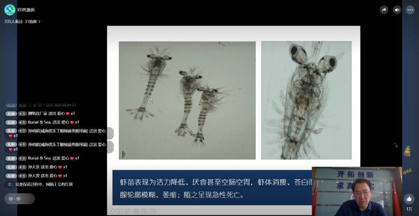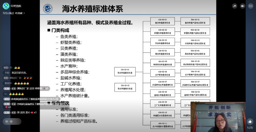 黃海水產(chǎn)研究所組織相關(guān)專家,進(jìn)行了對(duì)蝦疾病防控、海參養(yǎng)殖苗種繁育、水產(chǎn)育種技術(shù)、生態(tài)健康養(yǎng)殖模式、海水標(biāo)準(zhǔn)化發(fā)展歷程、海水養(yǎng)殖標(biāo)準(zhǔn)體系、漁藥開發(fā)、漁藥安全使用等方面的技術(shù)培訓(xùn)。來自全國沿海地區(qū)養(yǎng)殖基層技術(shù)人員1100余人線上參加了此次活動(dòng)。