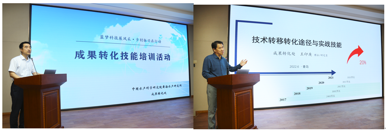 為提升科技人員技術(shù)推廣能力和支撐服務(wù)水平,6月17日,黃海水產(chǎn)研究所組織召開“藍(lán)夢(mèng)科技展風(fēng)采?鄉(xiāng)村振興在行動(dòng)”主題成果轉(zhuǎn)化技能培訓(xùn)。各部門負(fù)責(zé)人、科研人員和成果轉(zhuǎn)化業(yè)務(wù)骨干等60余名職工參加了培訓(xùn),黃海水產(chǎn)研究所副所長孔杰出席了活動(dòng)。
