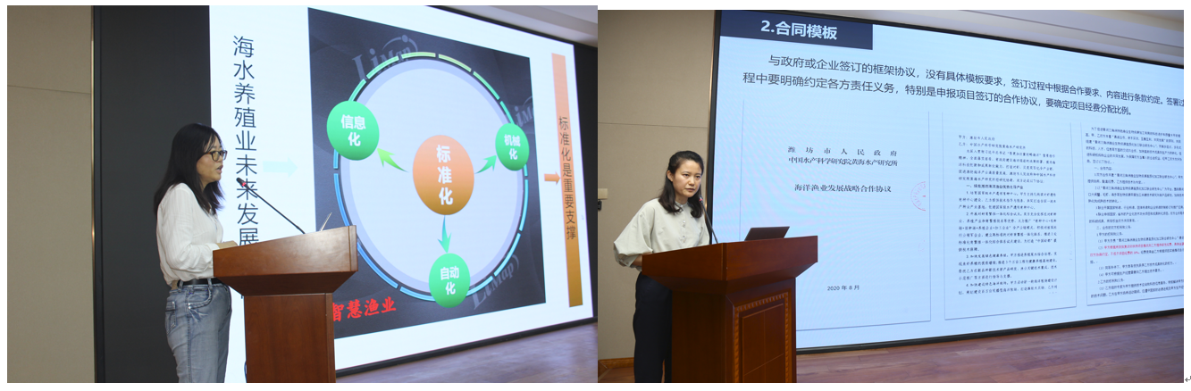 技能培訓(xùn)活動(dòng)中,王印庚處長圍繞國家政策支持、全國成果轉(zhuǎn)化現(xiàn)狀等方面進(jìn)行了深入分析,重點(diǎn)剖析了我所成果轉(zhuǎn)化途徑,總結(jié)了成果轉(zhuǎn)化技能要點(diǎn),分析了“十四五”時(shí)期我所成果轉(zhuǎn)化的重要任務(wù)。王曉萍副研究員解讀了技術(shù)合同類型選擇、簽訂、法律風(fēng)險(xiǎn)規(guī)避及專利轉(zhuǎn)化方式等方面相關(guān)內(nèi)容。汪文俊研究員介紹了漁業(yè)標(biāo)準(zhǔn)基本概況、標(biāo)準(zhǔn)體系結(jié)構(gòu)與組成、標(biāo)準(zhǔn)申請(qǐng)制訂工作程序。曲克明主任和孟憲紅主任分享了在產(chǎn)業(yè)技術(shù)集成、技術(shù)團(tuán)隊(duì)建設(shè)、產(chǎn)學(xué)研項(xiàng)目爭(zhēng)取、支撐服務(wù)能力提升等方面的心得體會(huì)。