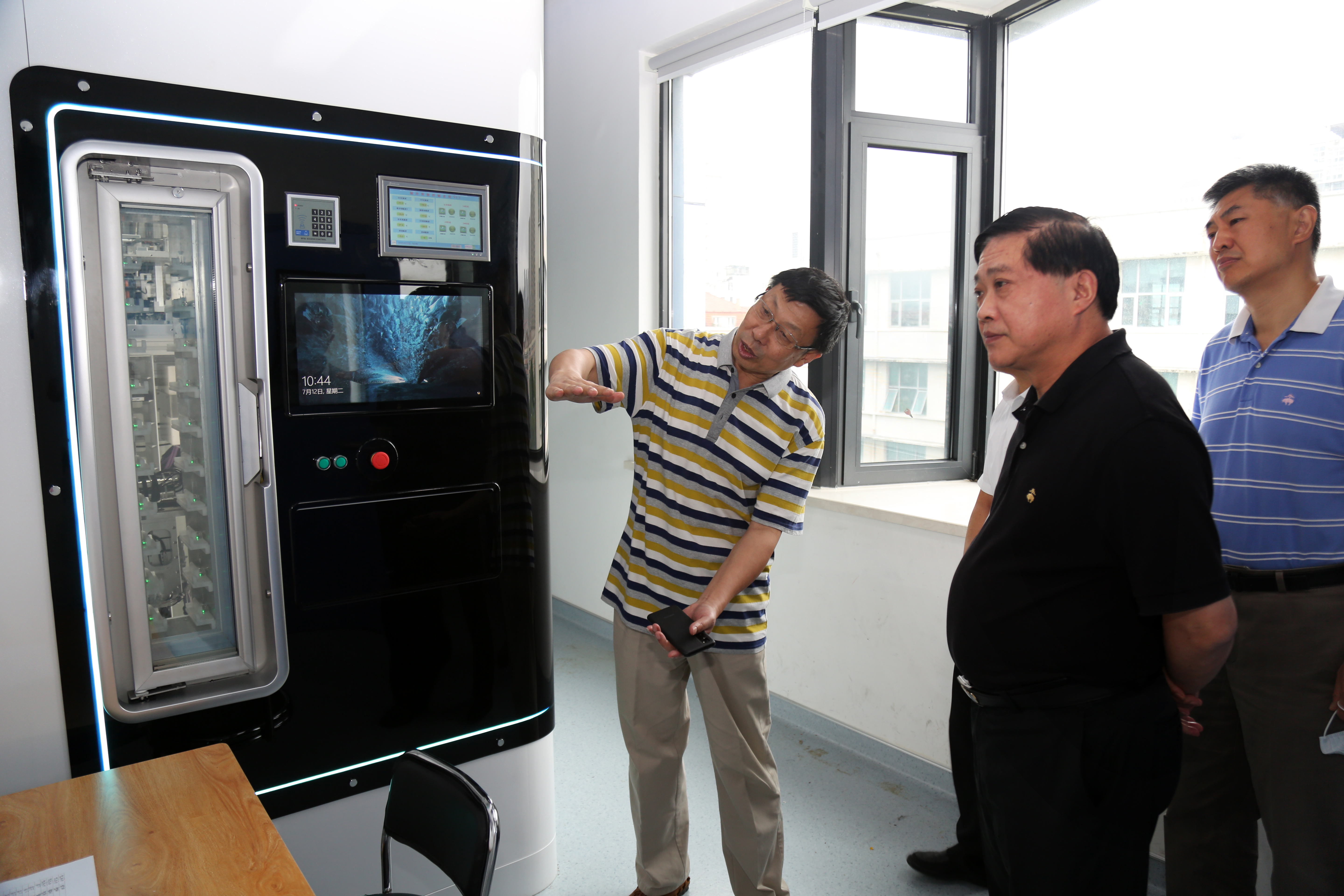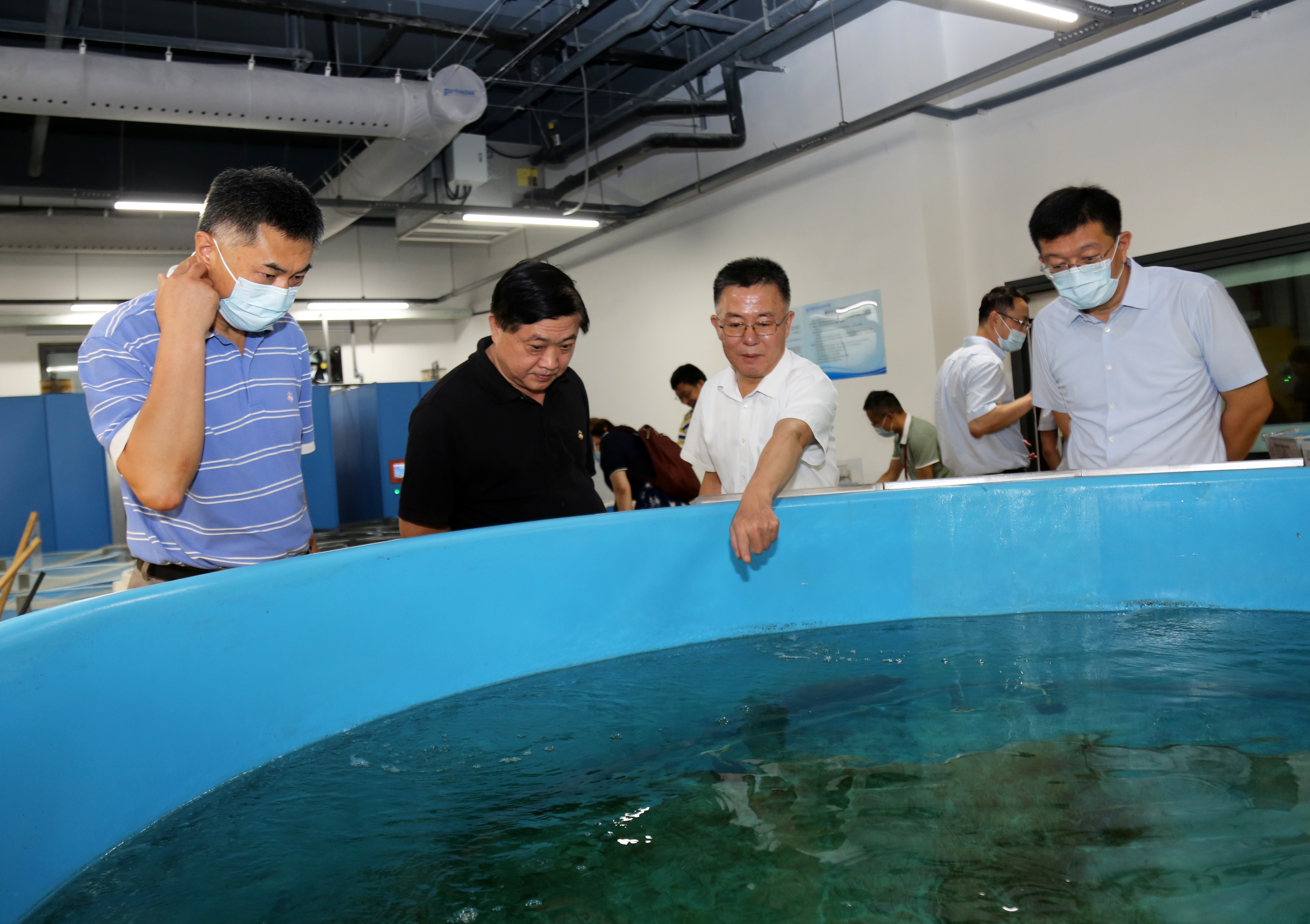 7月12日,山東省科技廳廳長唐波、辦公室主任蘇學峰,青島市科技局局長朱鐵一到中國水產科學研究院黃海水產研究所國家海洋漁業生物種質資源庫調研指導,黃海水產研究所所長金顯仕及相關部門負責人接待了唐波廳長一行。