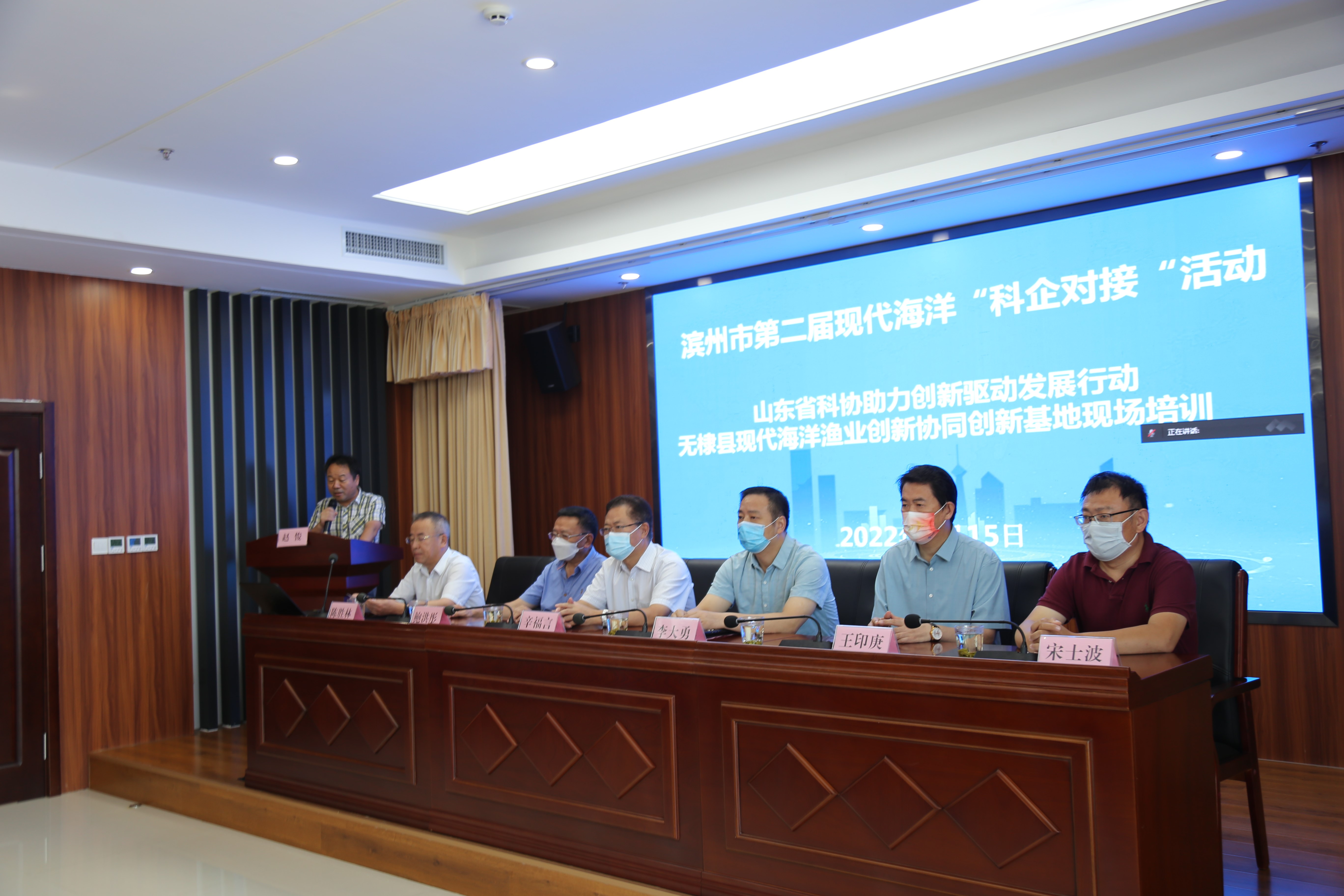 7月15日,山東省海洋經濟技術研究會在濱州市無棣縣舉辦了2022年度山東省科協助力創新驅動發展行動“無棣縣現代海洋漁業協同創新基地現場培訓會”,中國水產科學研究院黃海水產研究所專家應邀參加了培訓會。培訓會通過“線下+線上”相結合的模式進行。來自濱州市、無棣縣的海洋漁業管理人員、企業負責人、技術推廣人員、養殖基層技術人員近120人參會學習。山東省科協常委、山東省海洋經濟技術研究會副會長、黃海水產研究所黨委委員辛福言研究員及成果轉化處處長王印庚研究員等一行6人參加此次培訓活動。培訓會議由研究會秘書長、黃海水產研究所漁業環境與生物修復研究室趙俊研究員主持。